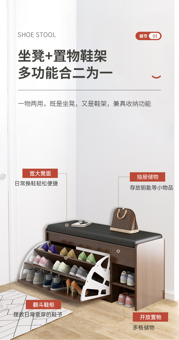 가정용 현관 신발장용 덤블러 신발 교환 스툴, 앉아서 신는 신발 스툴, 현관 스툴, 인터넷 연예인 입구 소프트백 쿠션 신발장