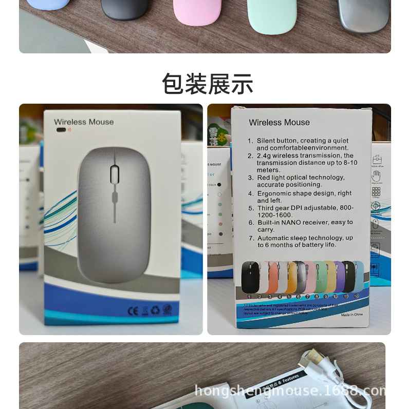 원천 공장에서 재고 도매, 화웨이 및 애플 휴대폰, 컴퓨터용 듀얼 모드 블루투스 무소음 무선 마우스, 해외 배송 가능스토어 가기