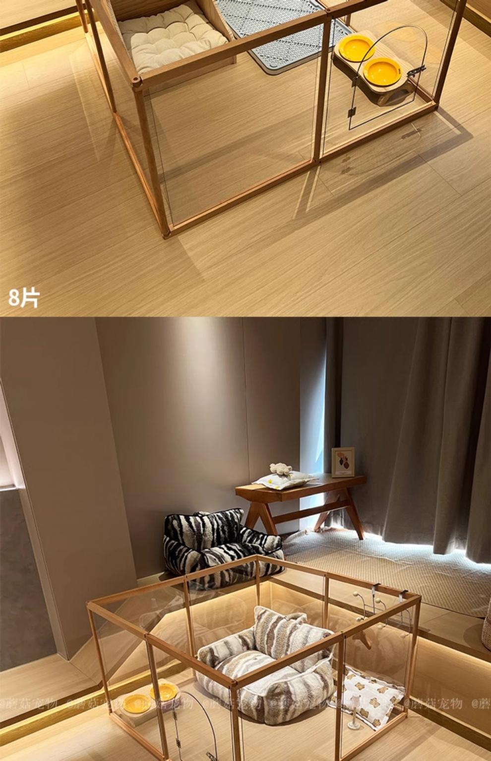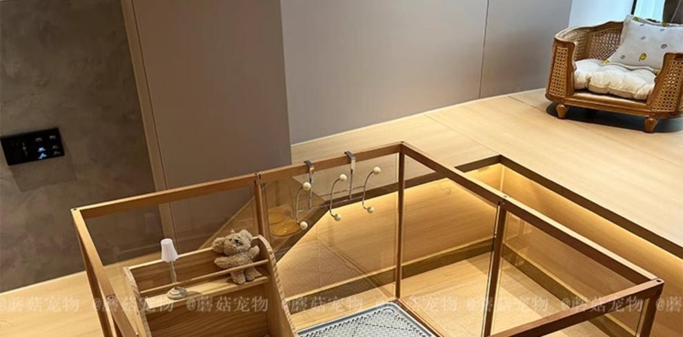 버섯 애완 동물 공원 나무 아크릴 개 울타리 개 울타리 무료 접합 비숑 프리제 실내 투명 개 케이지