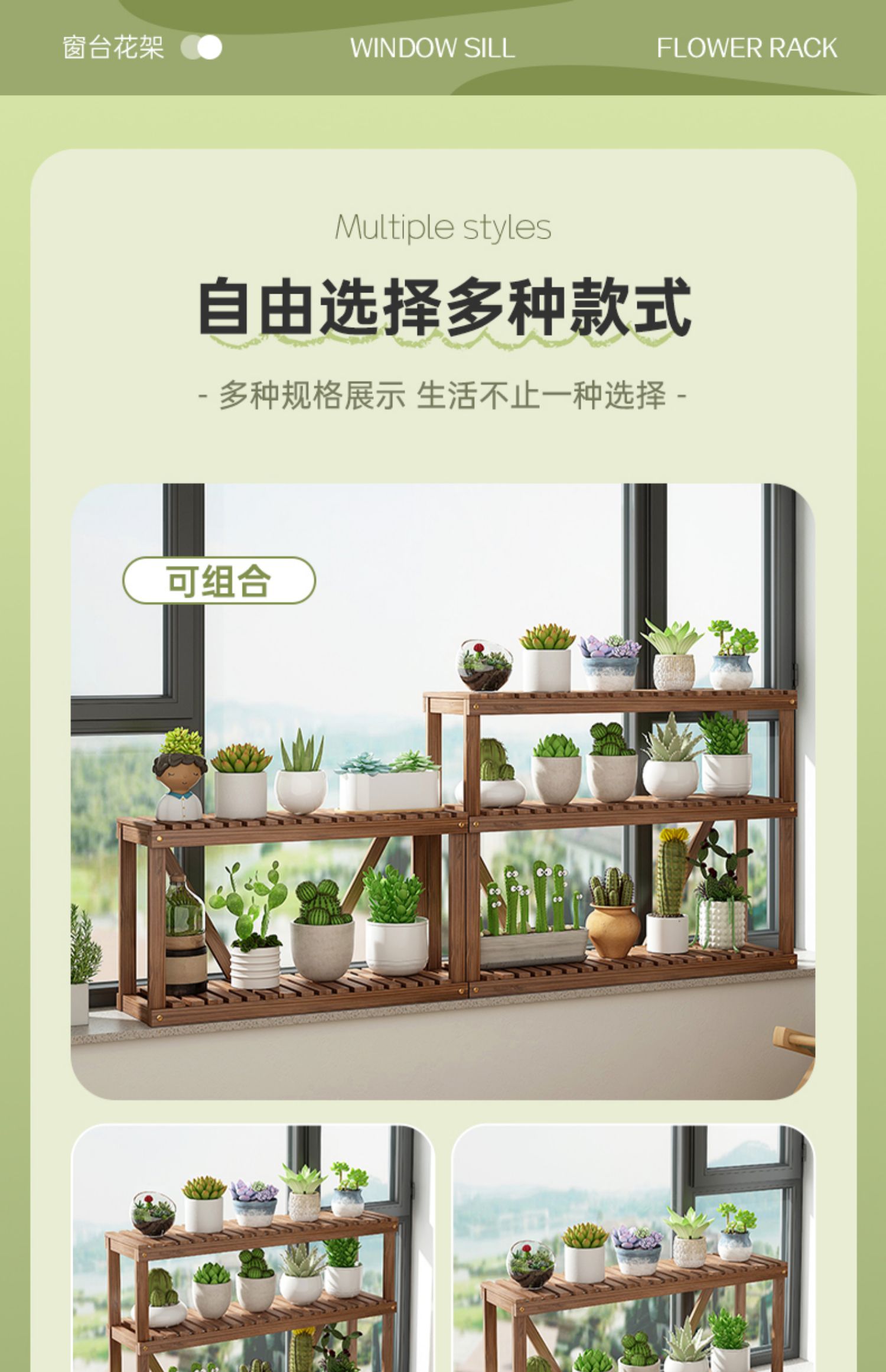 단단한 나무 꽃 선반 수납 선반 발코니 바닥에 서 있는 거실 2024 새로운 스타일의 창틀 다육 디스플레이 선반 데스크탑 선반스토어 가기