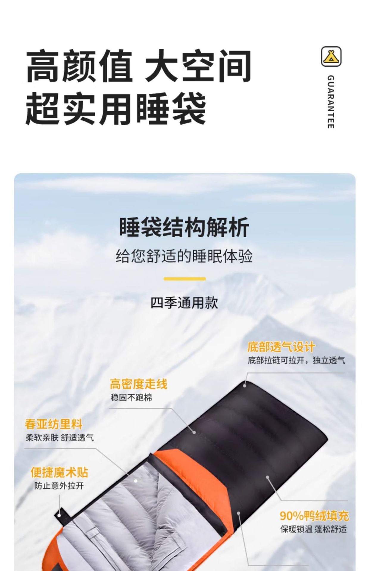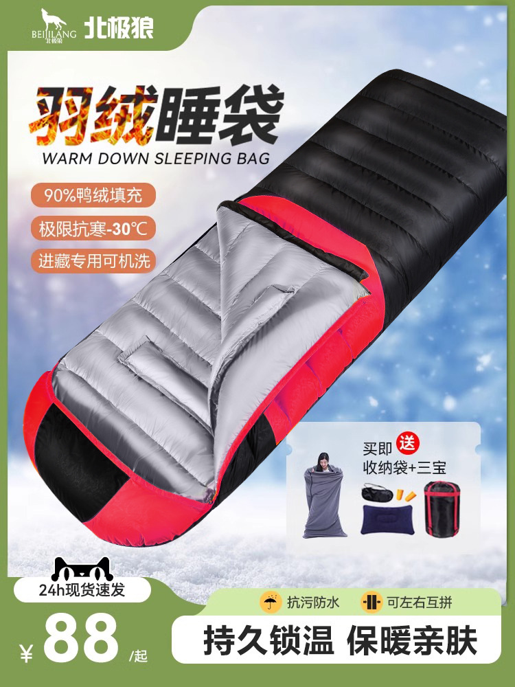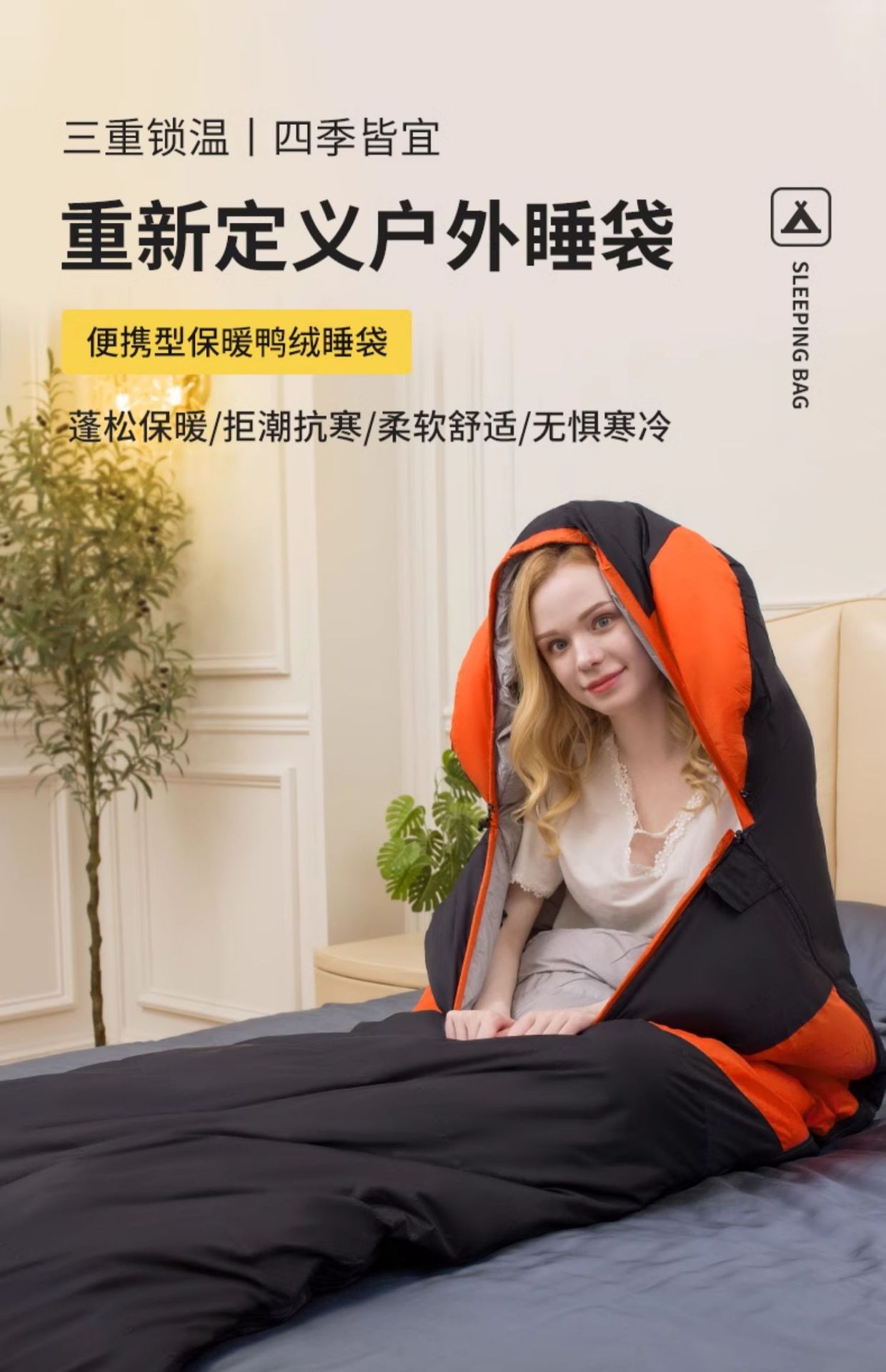 겨울철 야외 캠핑카용 성인용 두꺼운 방한 다운 침낭, 겨울철 이불 겸용
