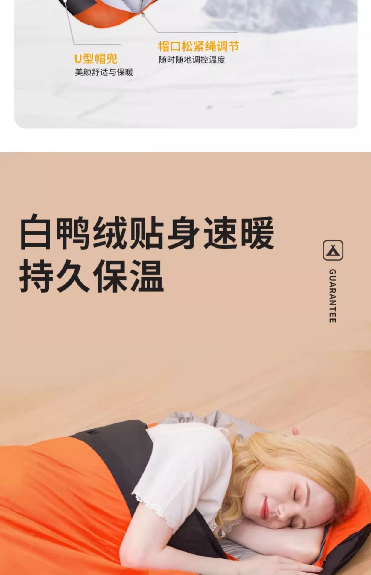 • 다운면은 면 침낭이고, 화이트 덕다운은 다운 침낭입니다.