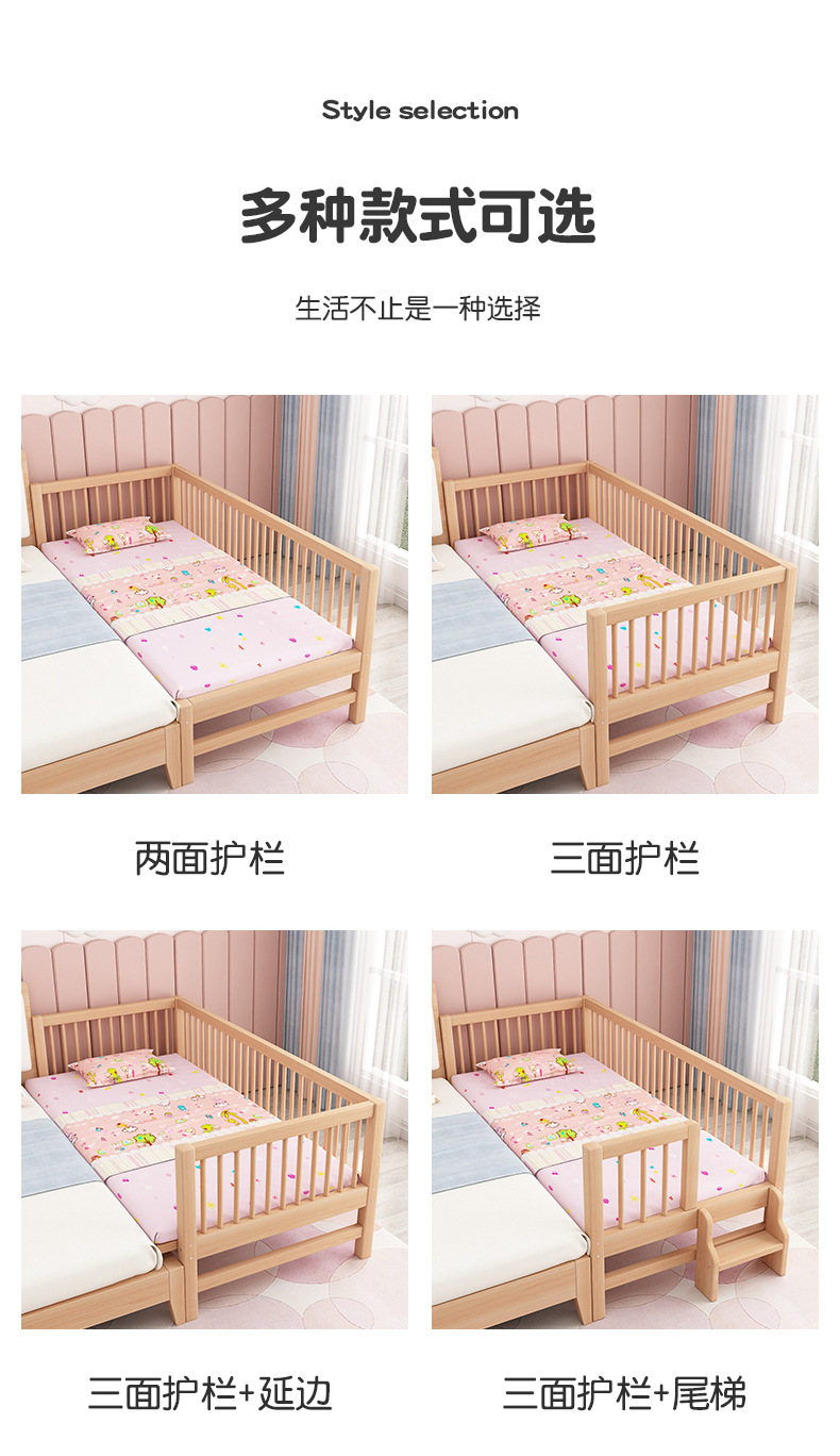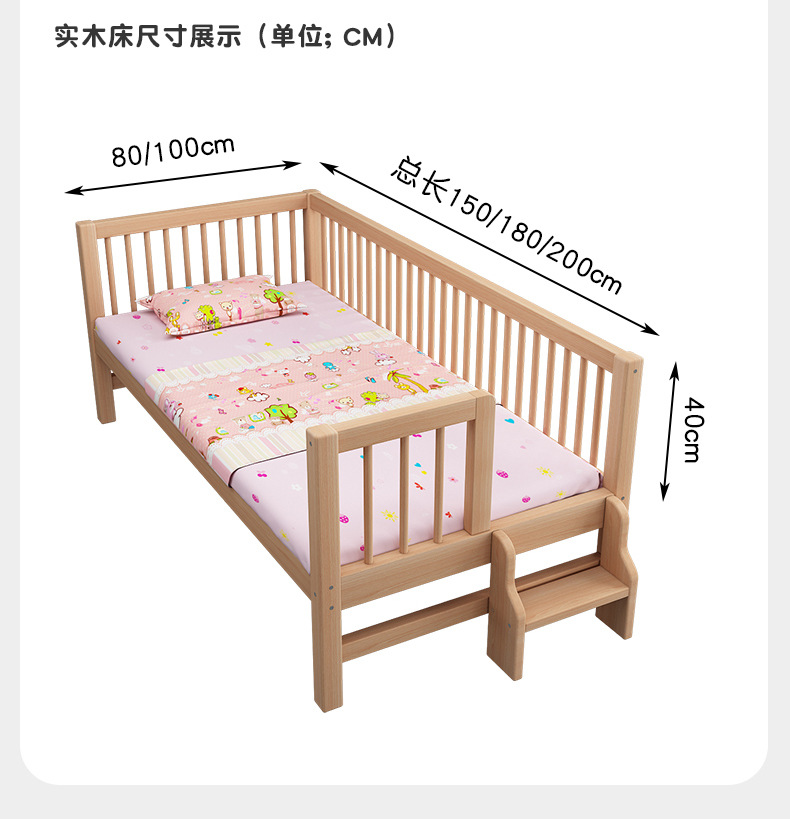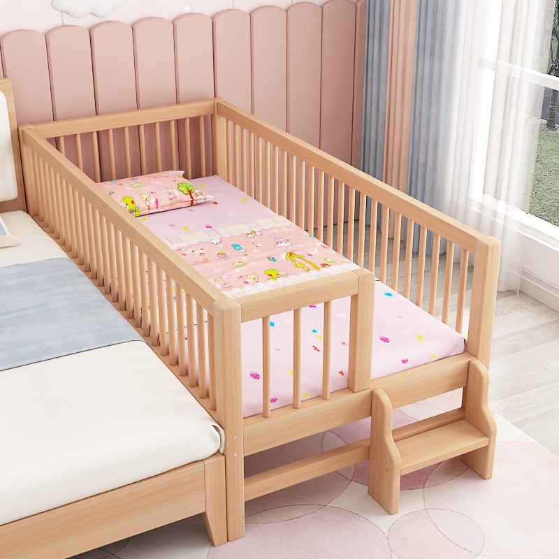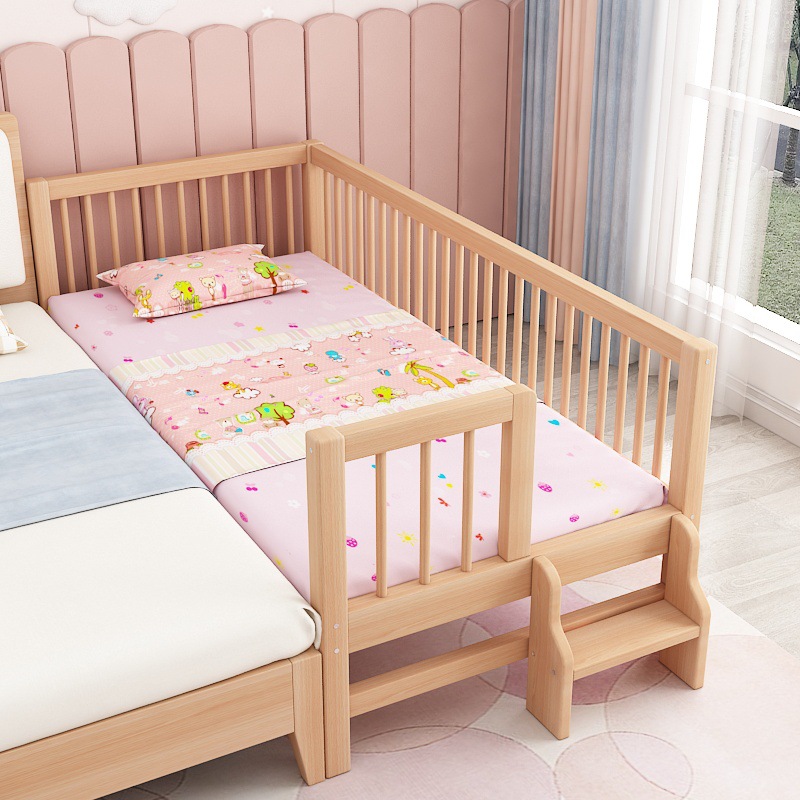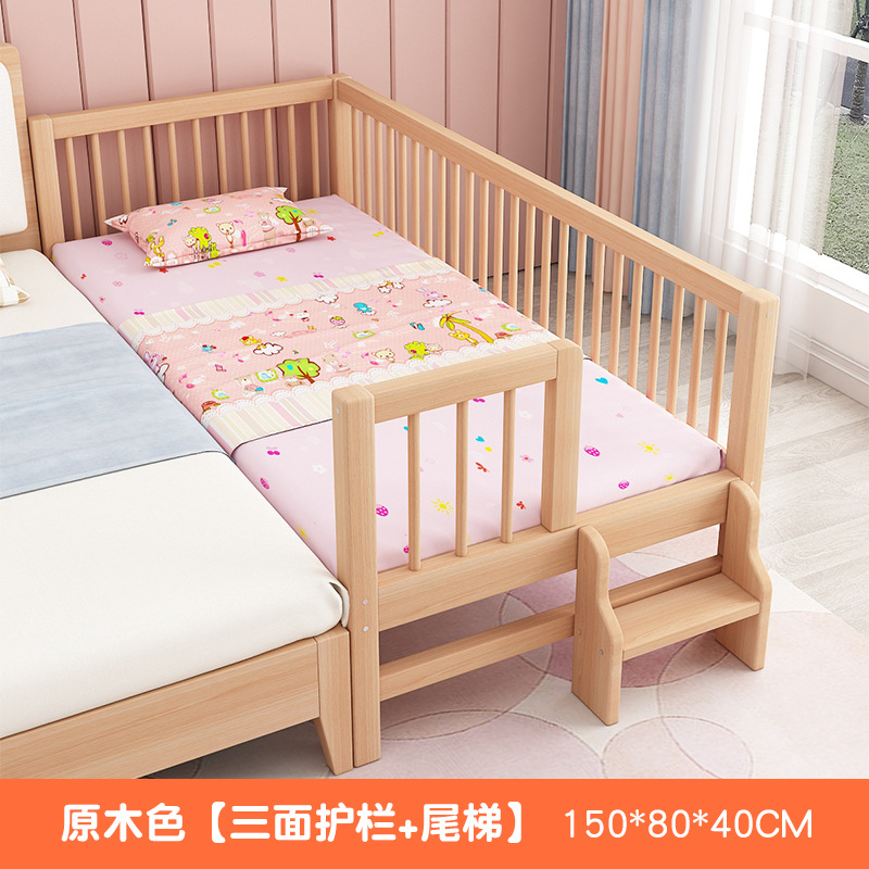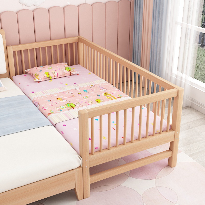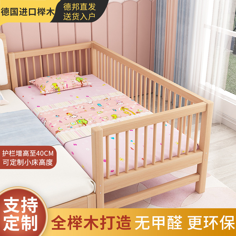 단단한 나무 어린이 침대, 가드 레일이있는 대형 침대, 싱글 소년의 확장 된 아기 침대 옆 유아용 침대, 너도밤 나무