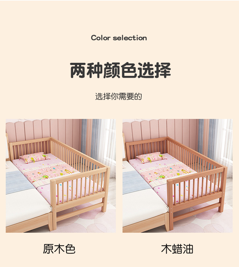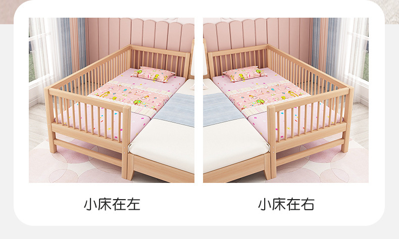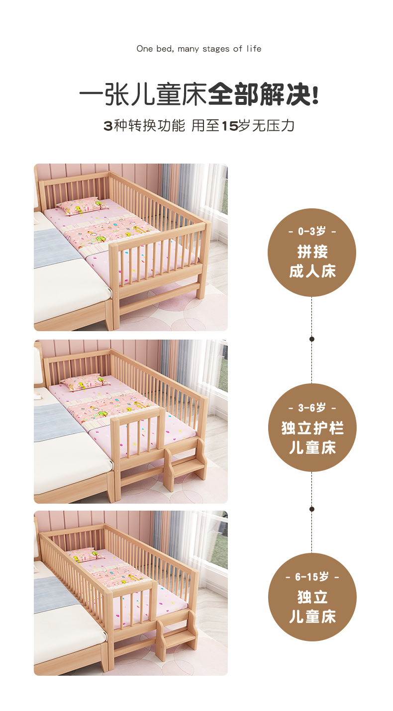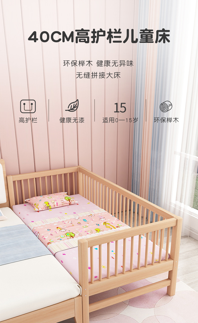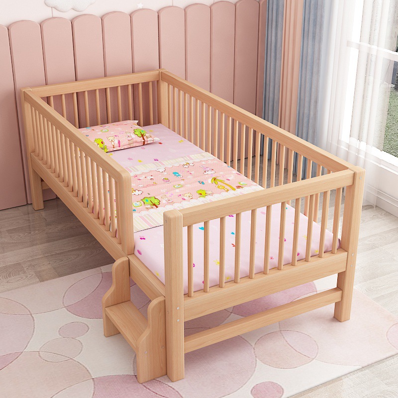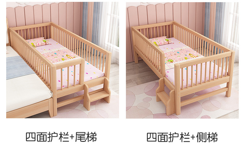 단단한 나무 어린이 침대, 가드 레일이있는 대형 침대, 싱글 소년의 확장 된 아기 침대 옆 유아용 침대, 너도밤 나무
