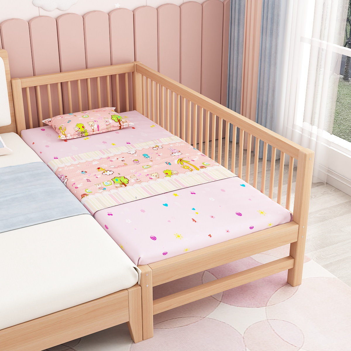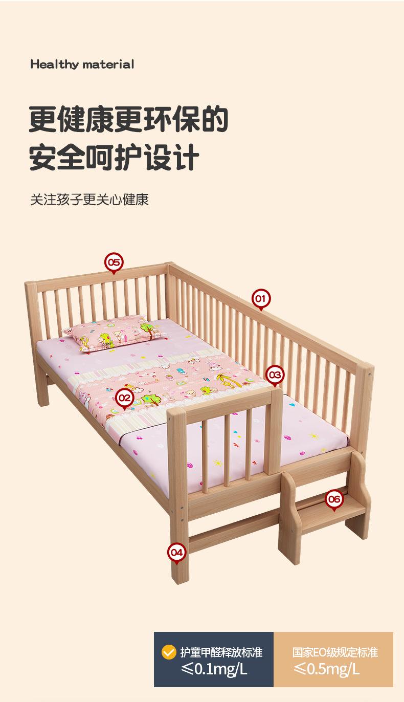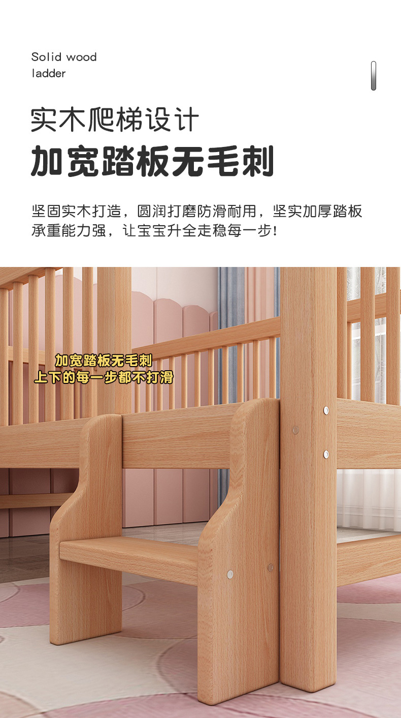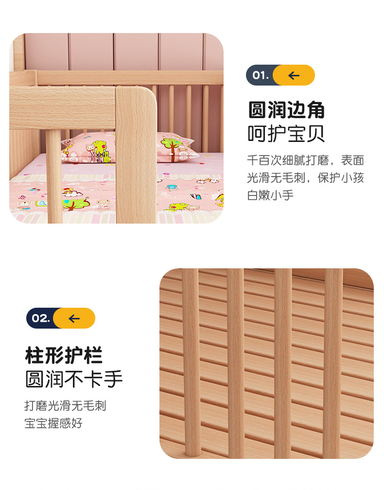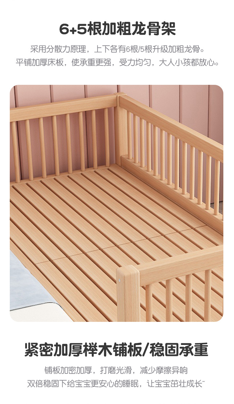단단한 나무 어린이 침대, 가드 레일이있는 대형 침대, 싱글 소년의 확장 된 아기 침대 옆 유아용 침대, 너도밤 나무