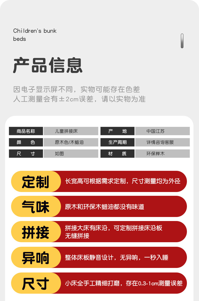 • 길이, 너비, 높이를 맞춤 설정할 수 있으며 기본 침대 높이는 40cm입니다.