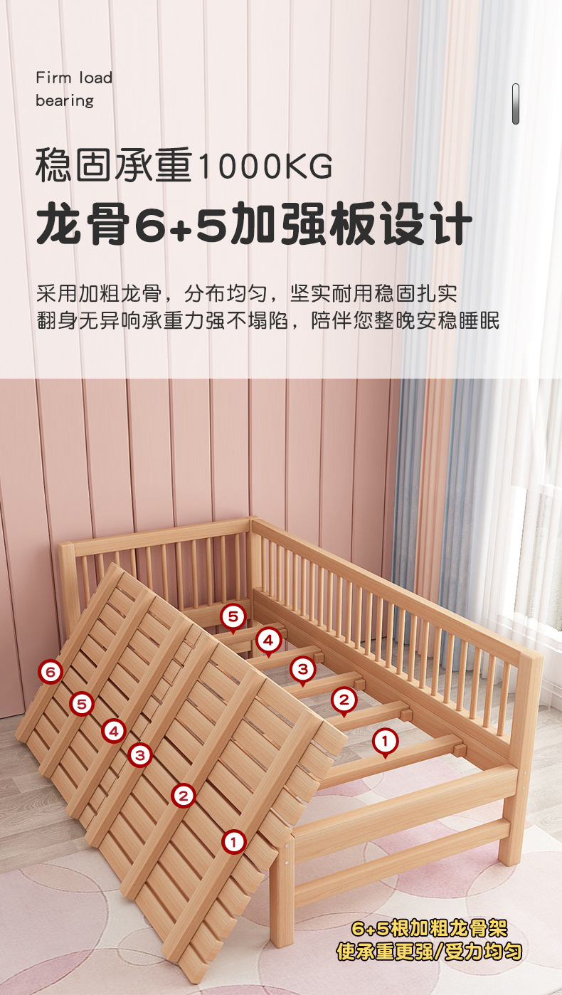 단단한 나무 어린이 침대, 가드 레일이있는 대형 침대, 싱글 소년의 확장 된 아기 침대 옆 유아용 침대, 너도밤 나무스토어 가기