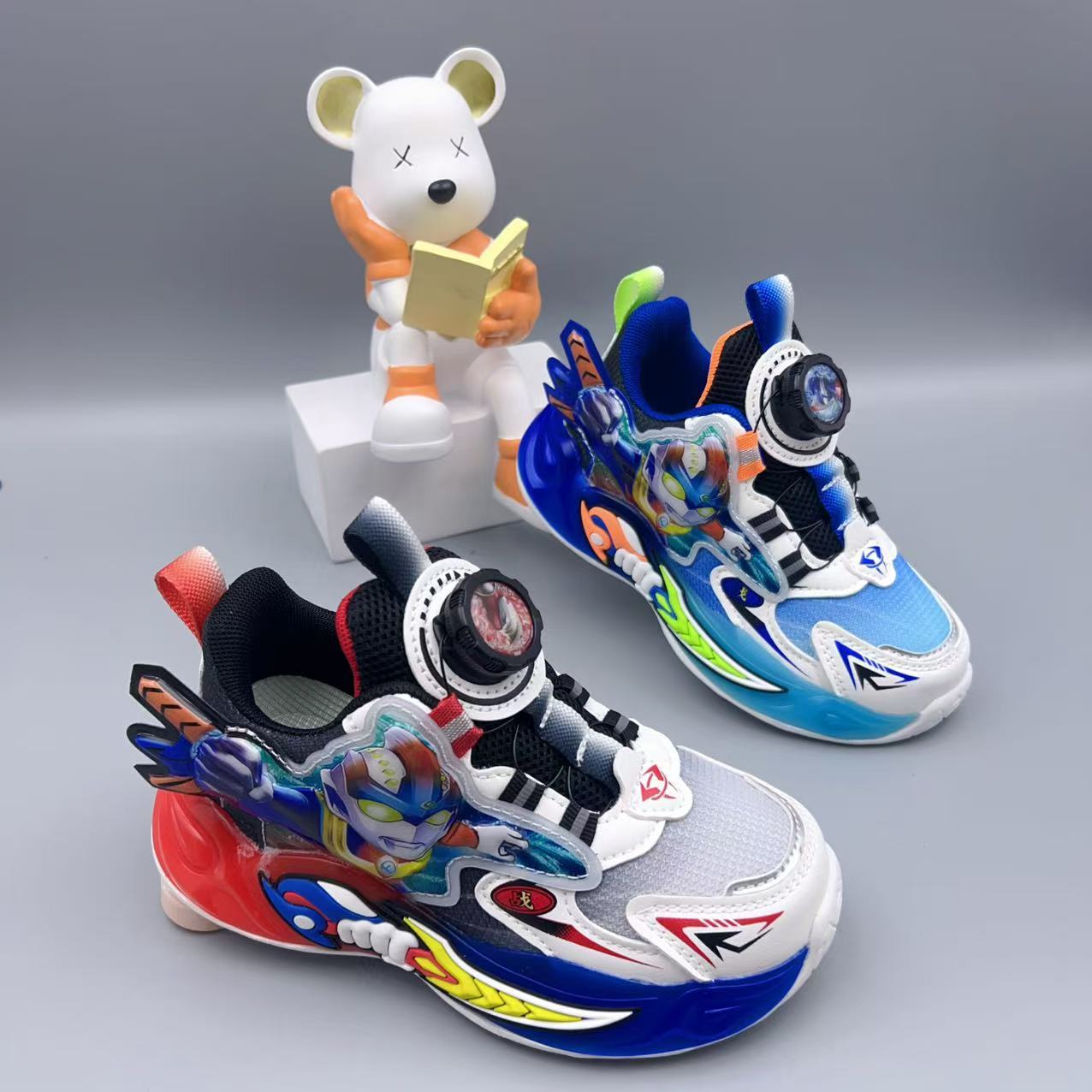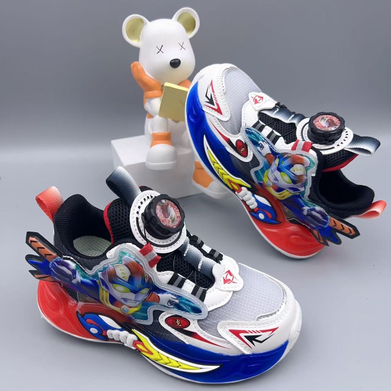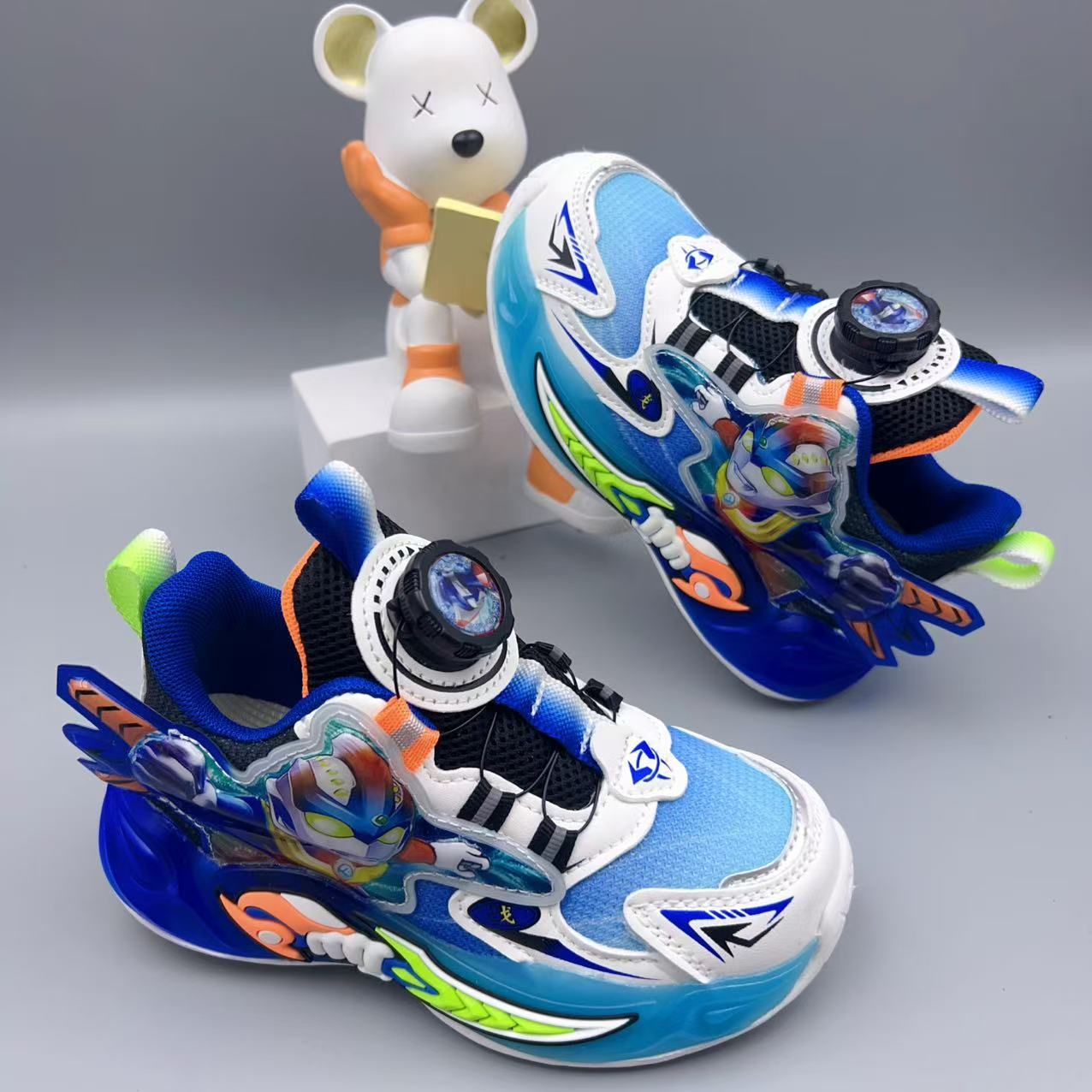 어린이 새로운 더블 메쉬 통기성 만화 스포츠 신발 2025 가을 소년 조명 회전 버클 운동화 캐주얼 신발