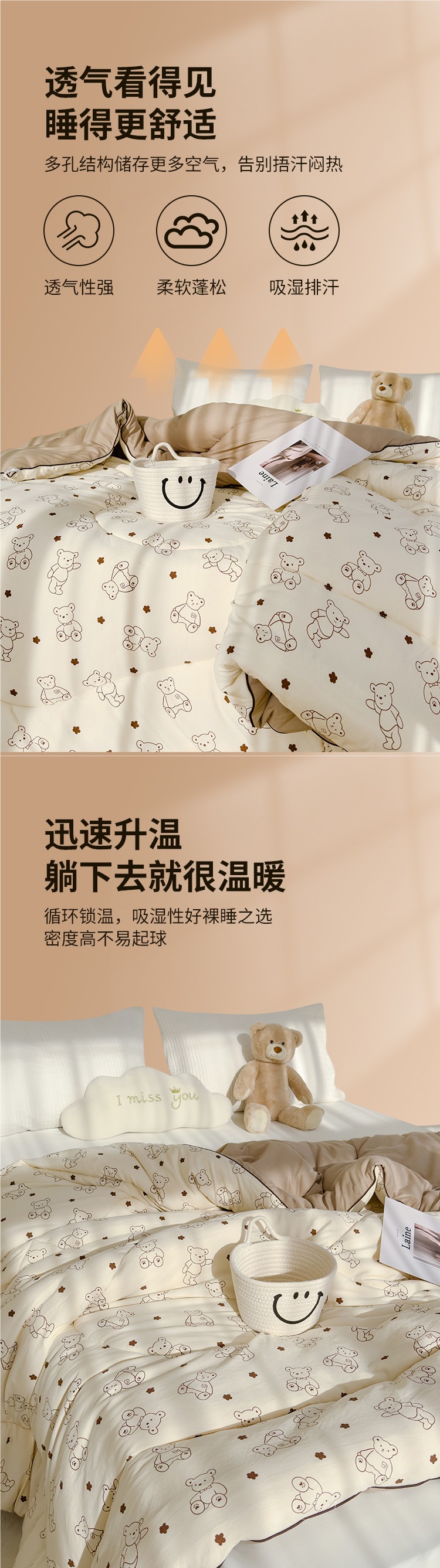 • A급 업그레이드 버전 - 더블 레이어 원사 사계절 퀼트 - 딘 리틀베어