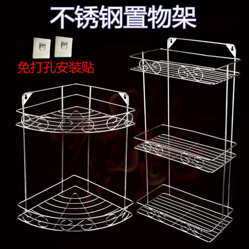 구멍이 없는 스테인레스 스틸 욕실 주방 삼각형 선반 조미료 랙 보관 벽걸이 삼각형 바구니 보관 랙스토어 가기