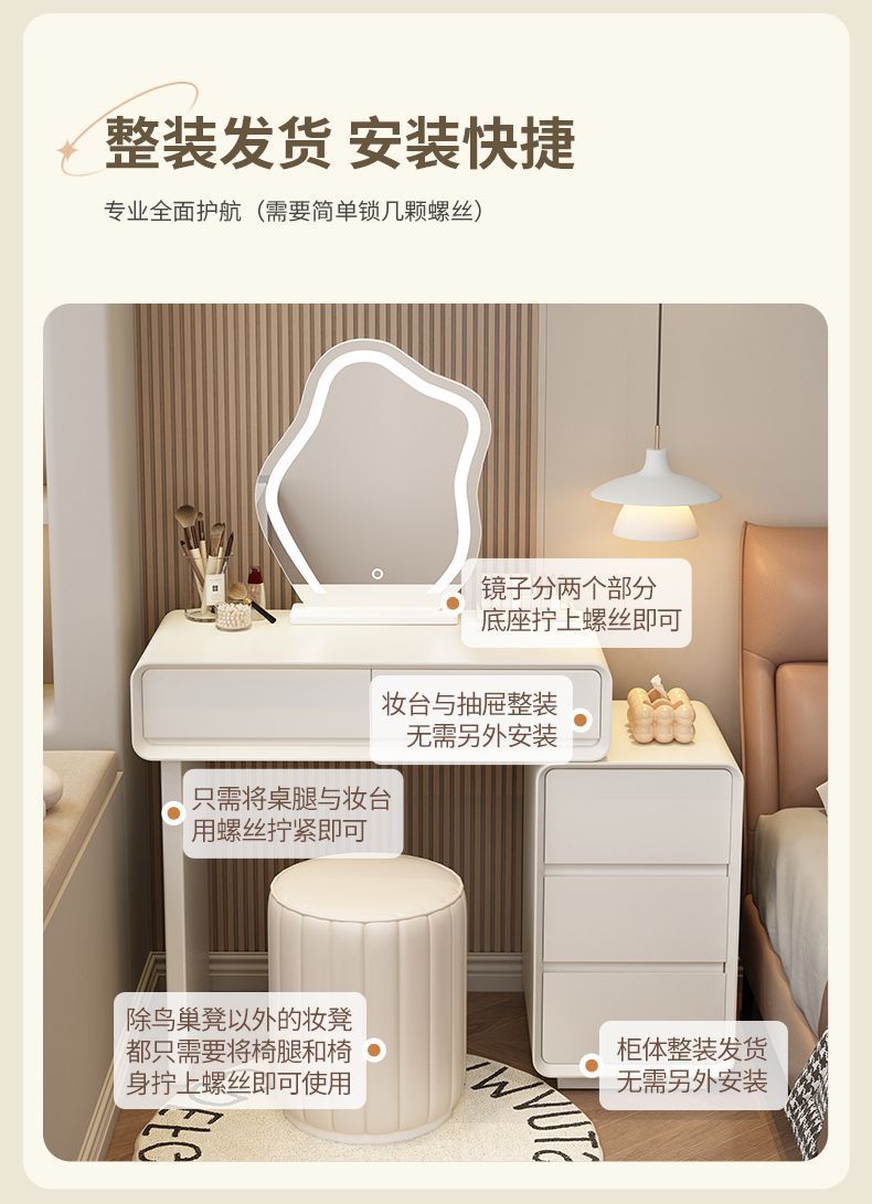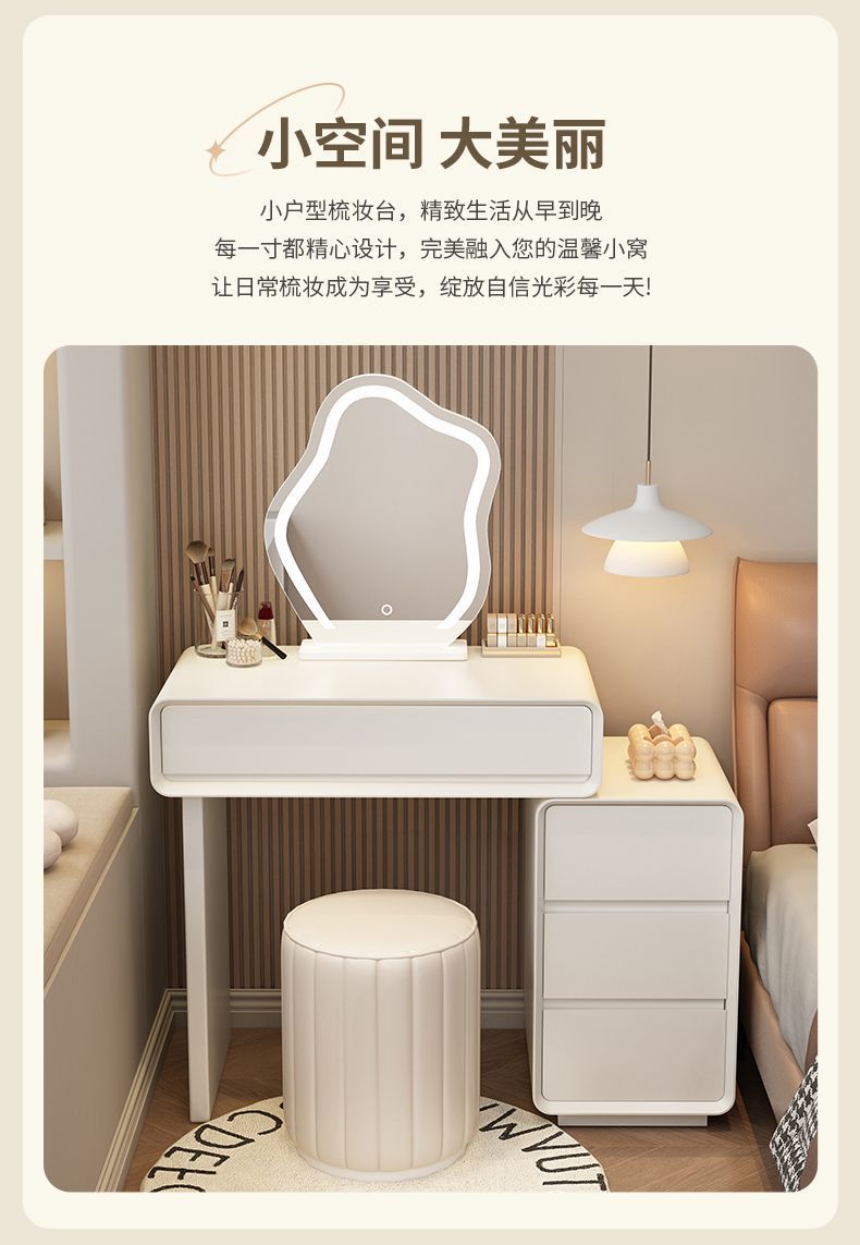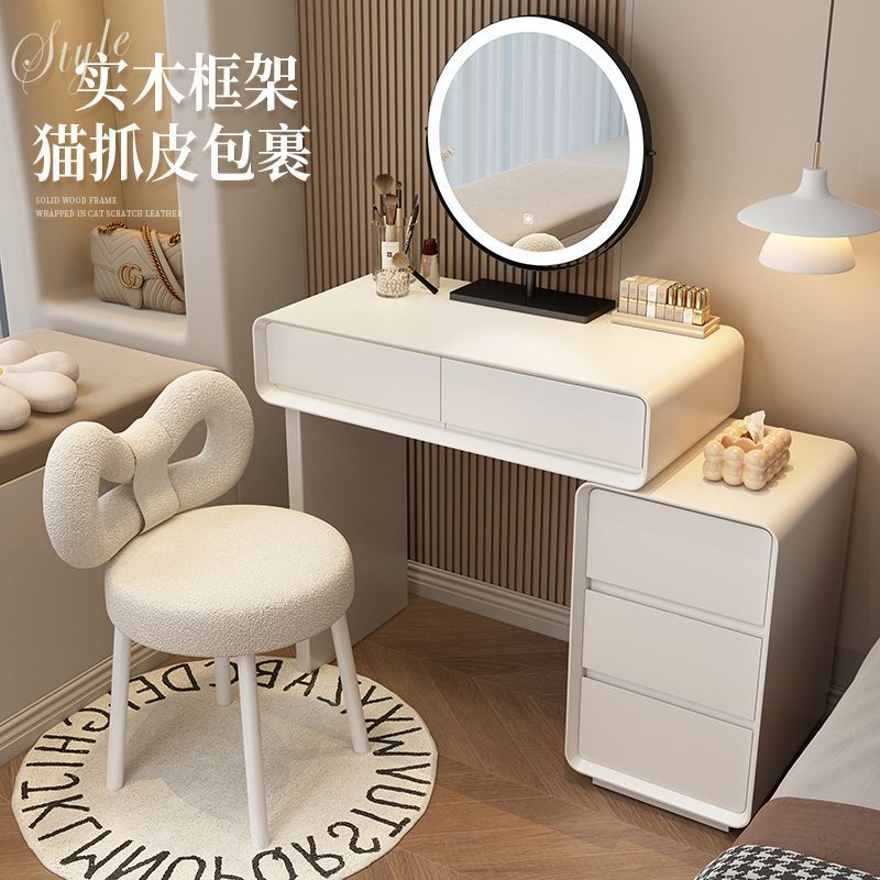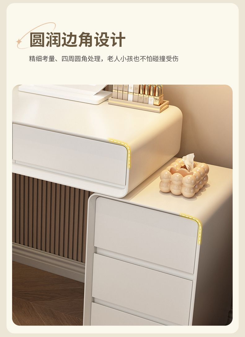 크림 스타일 2025 새로운 스타일의 드레싱 테이블 침실 서랍장 일체형 현대적인 단순한 단단한 나무 화장대 작은 침대 옆 테이블