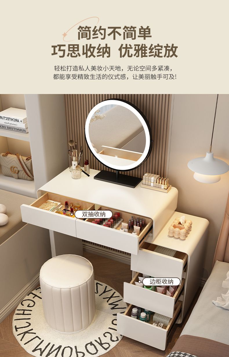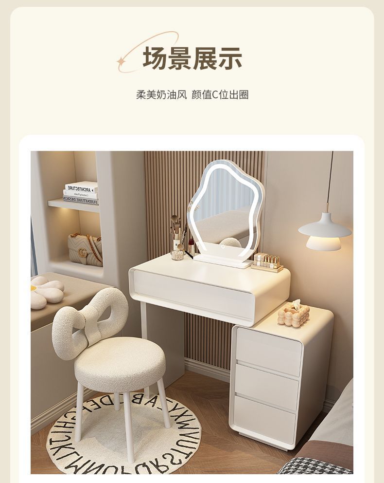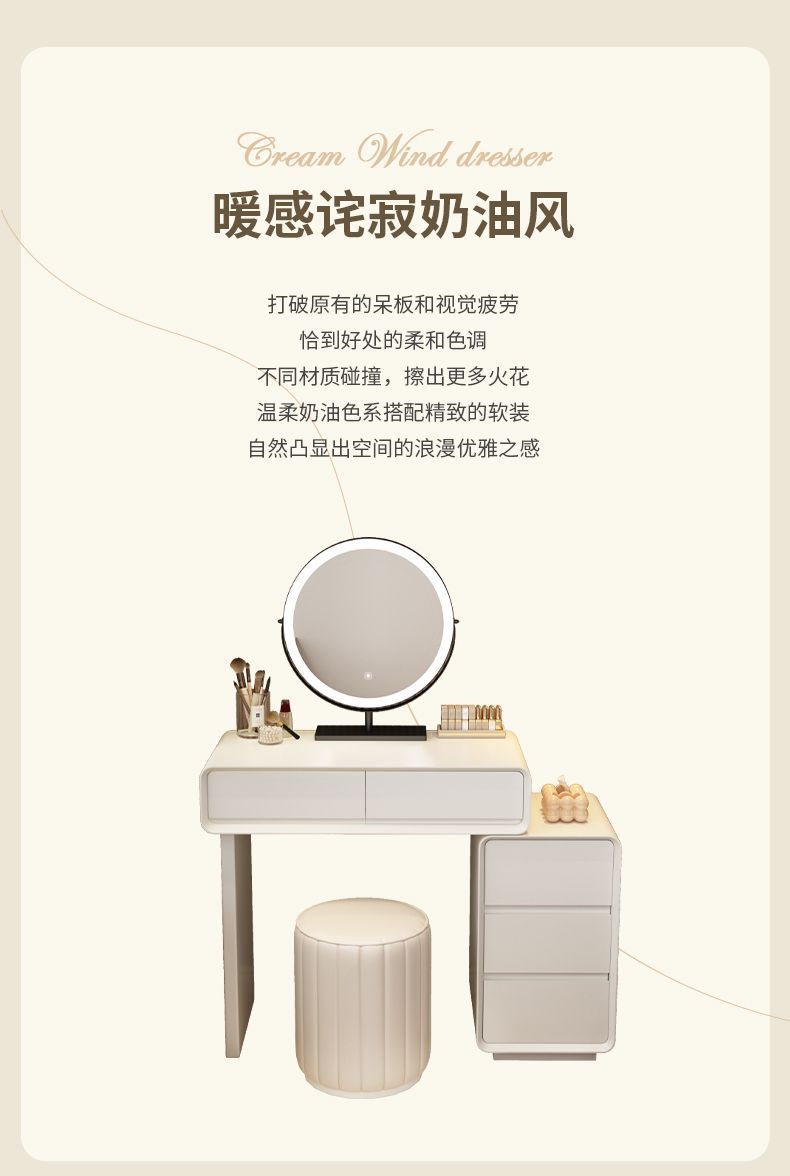 크림 스타일 2025 새로운 스타일의 드레싱 테이블 침실 서랍장 일체형 현대적인 단순한 단단한 나무 화장대 작은 침대 옆 테이블스토어 가기