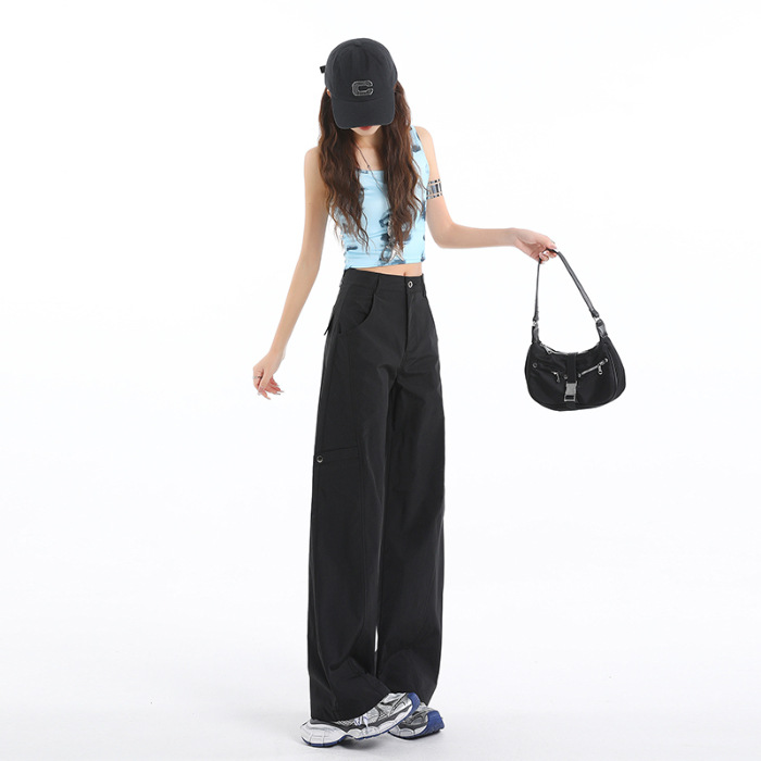 2025 여름 속건성 얇은 작업복 캐주얼 칼집 바지 여성용 아이스 실크 쿨링 충전 등산 댄스 스포츠 바지스토어 가기