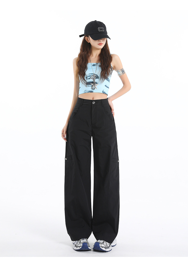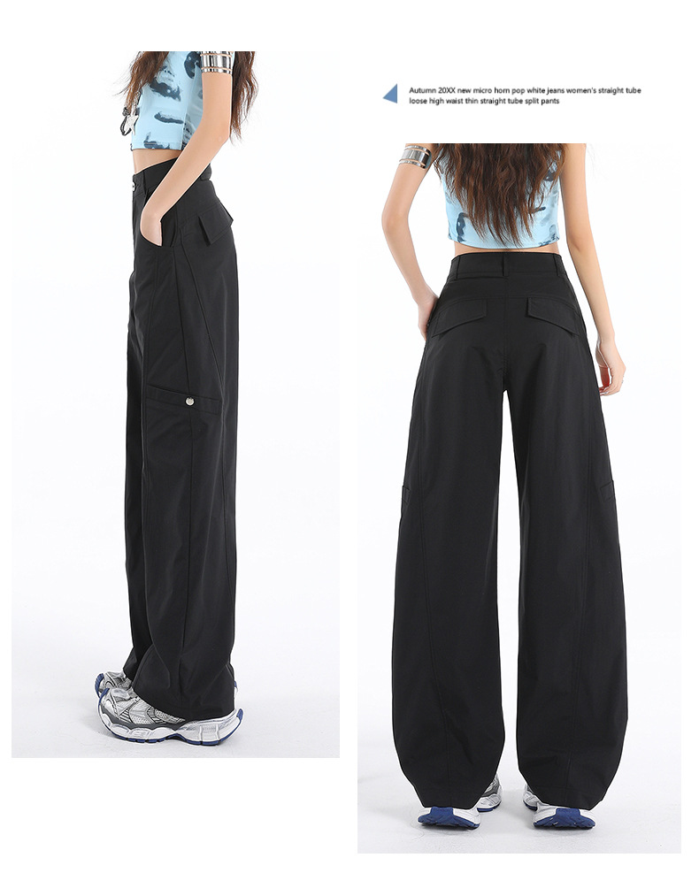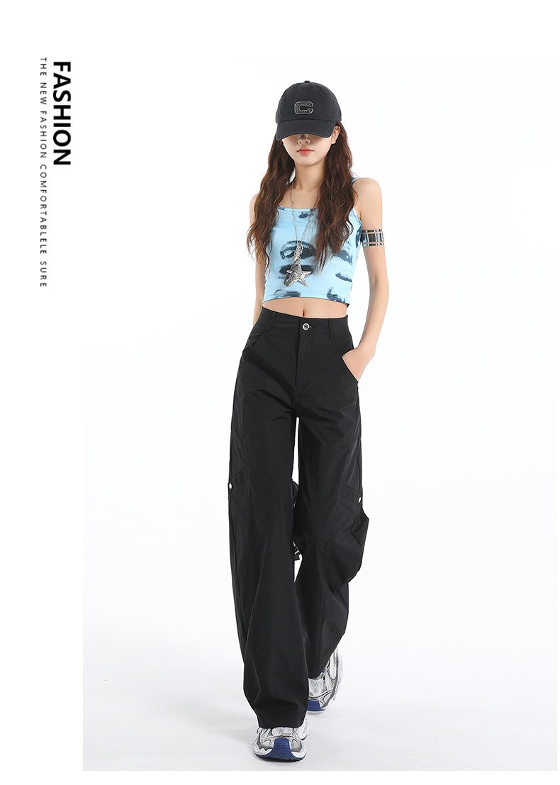 2025 여름 속건성 얇은 작업복 캐주얼 칼집 바지 여성용 아이스 실크 쿨링 충전 등산 댄스 스포츠 바지