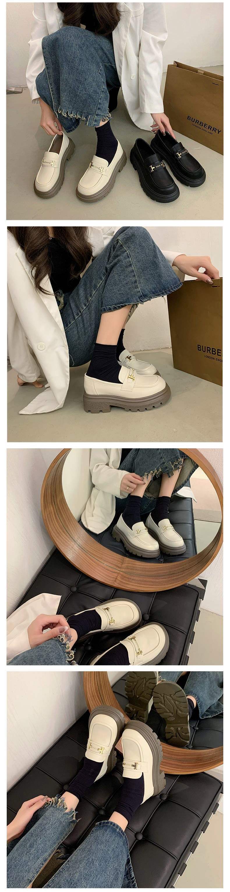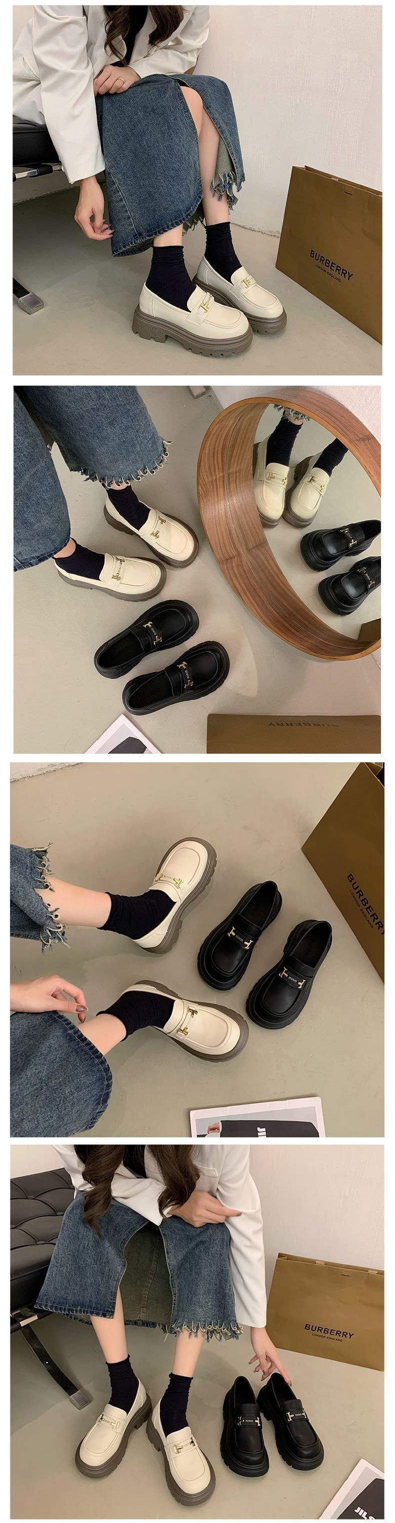여성용 로퍼 2025 신작 가을 여성 신발 두꺼운 밑창 슬립 온 영국 스타일 작은 가죽 신발 검은 신발 jk 싱글 신발스토어 가기
