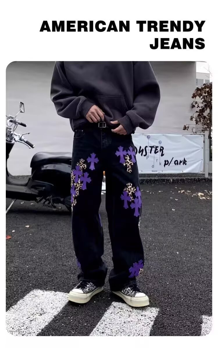 뉴 크로우 청바지 남성 아메리칸 패션 브랜드 크로스 루즈 스트레이트 캐주얼 와이드 팬츠 남성 여름스토어 가기