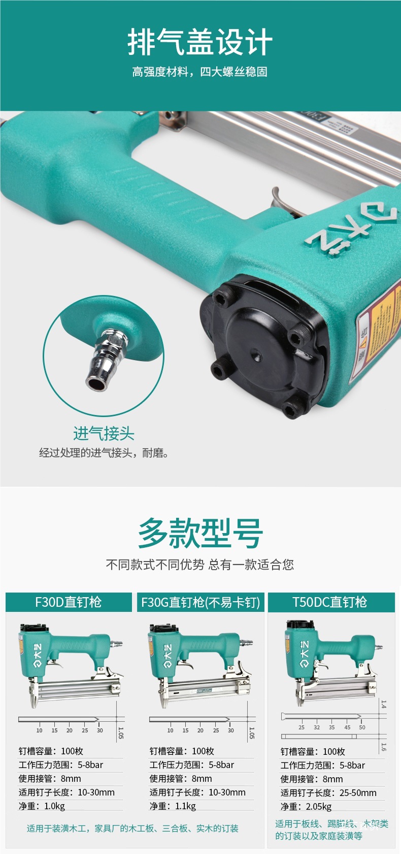 Dayi 에어 네일 건 F30 스트레이트 네일 건 T50 스틸 네일 건 목공 장식 1013 코드 네일 건 모기 네일 건 공압 도구
