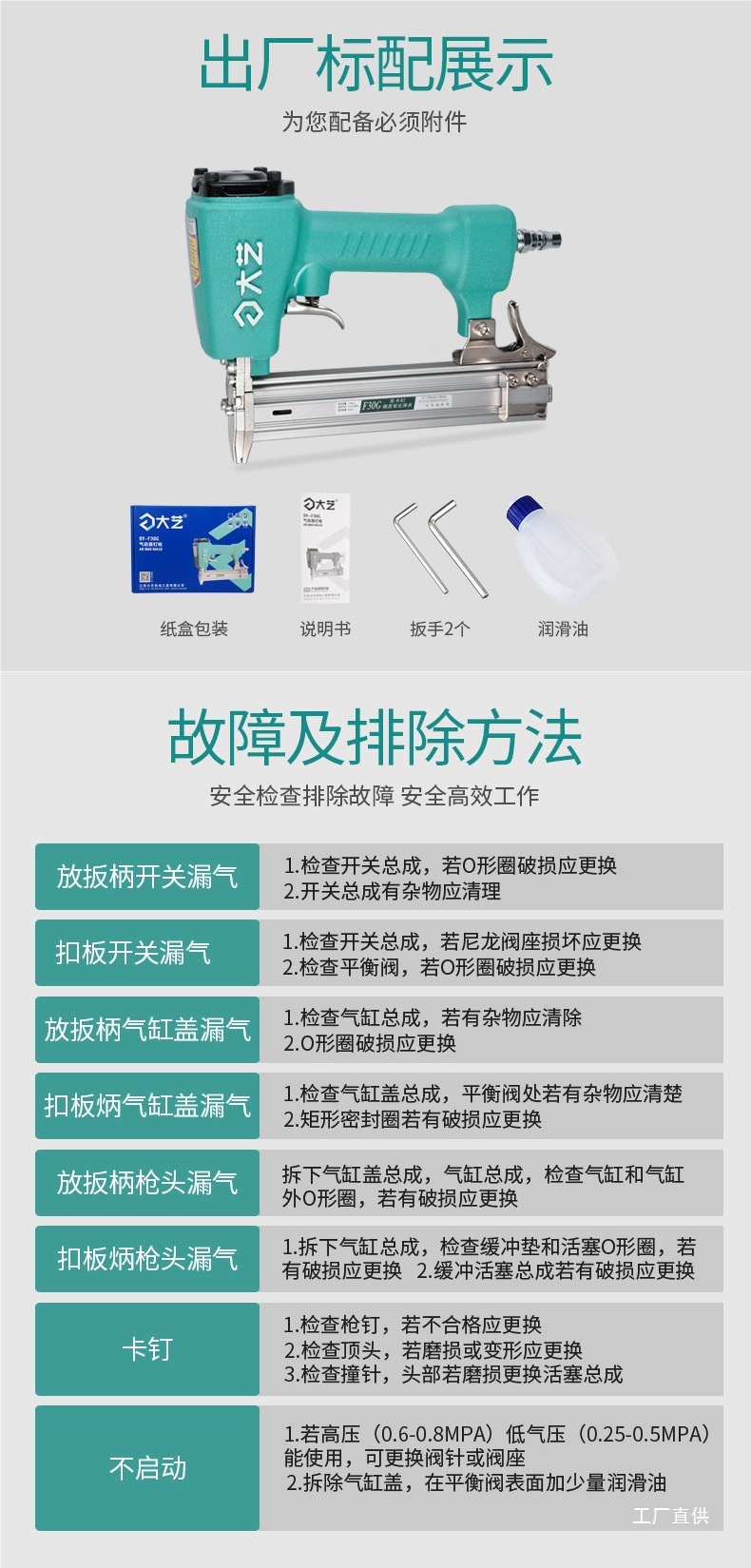 • F30 스트레이트 네일건 공장 표준 구성