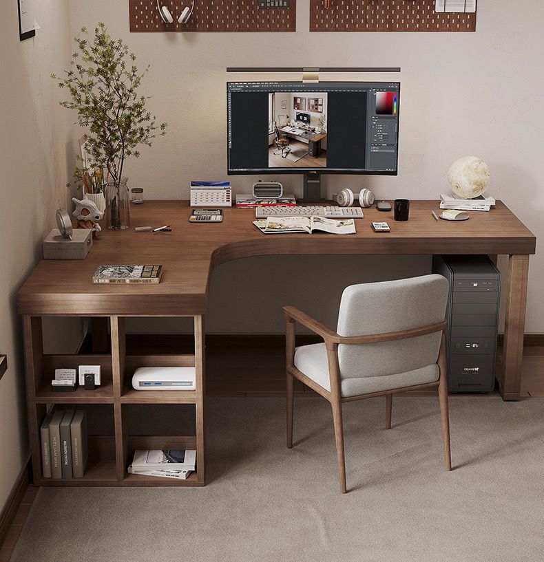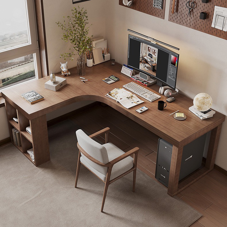 간단한 단단한 나무 코너 책상 책장 조합 침실 홈 7자형 책상 코너 코너 학습 테이블