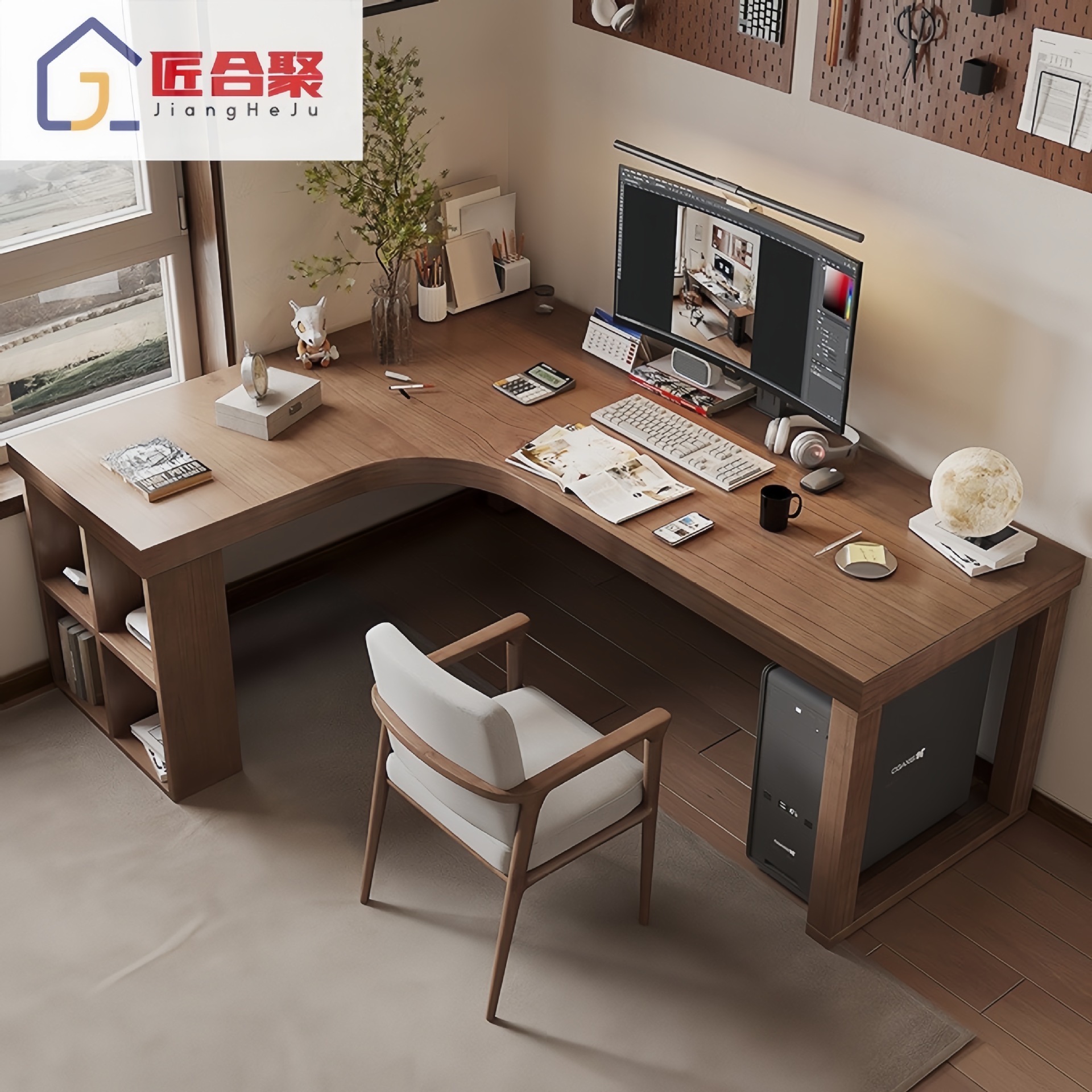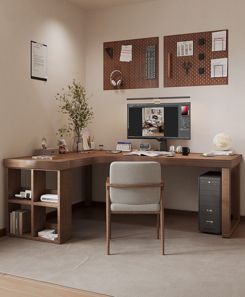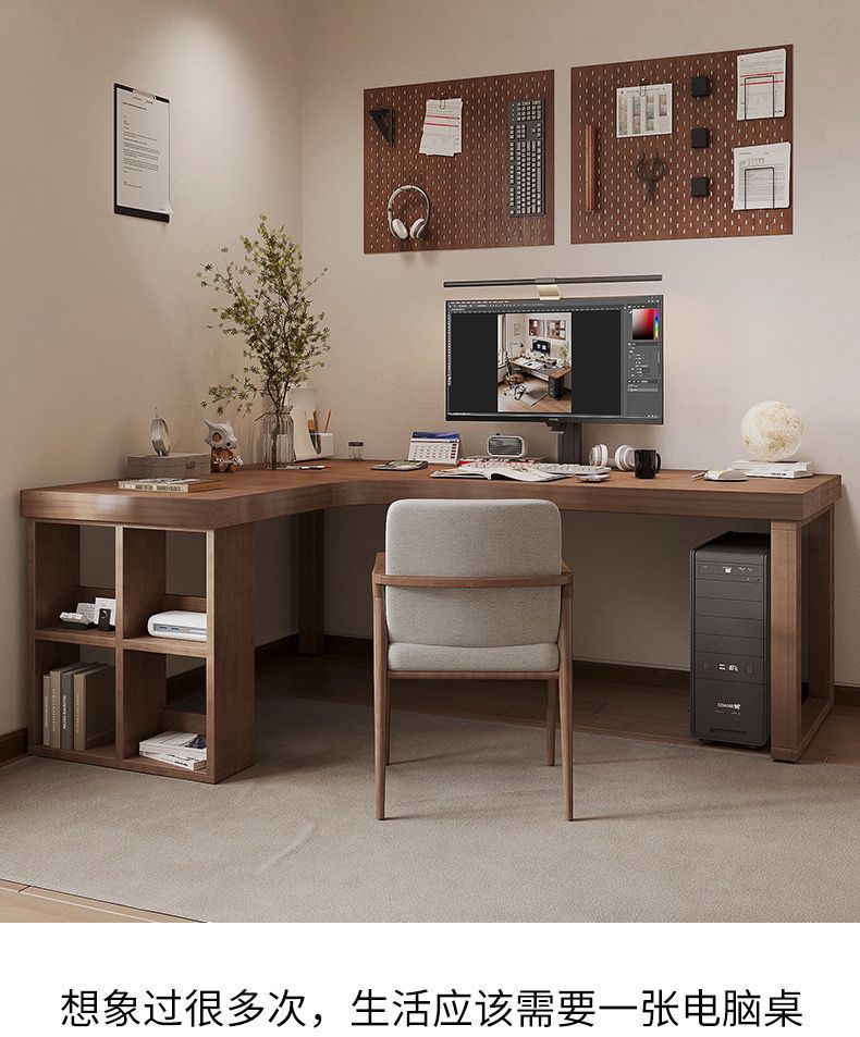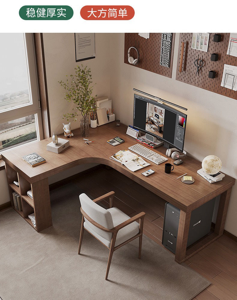 간단한 단단한 나무 코너 책상 책장 조합 침실 홈 7자형 책상 코너 코너 학습 테이블스토어 가기