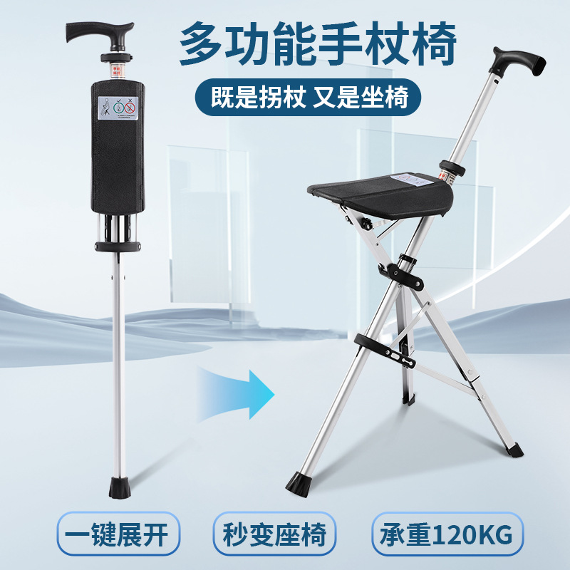 국경 간 노인 지팡이 의자, 접이식 지팡이 의자, 등산 여행, 미끄럼 방지 하이킹, 원클릭 열기 지팡이 의자스토어 가기