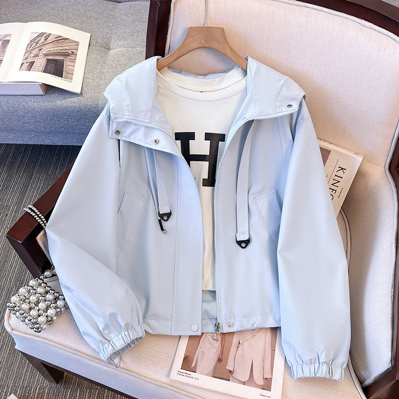 헤이즈 밀크 블루 후드 어썰트 재킷 여성 야구 재킷 2025 봄 가을 신작 슈퍼 핫 탑스토어 가기