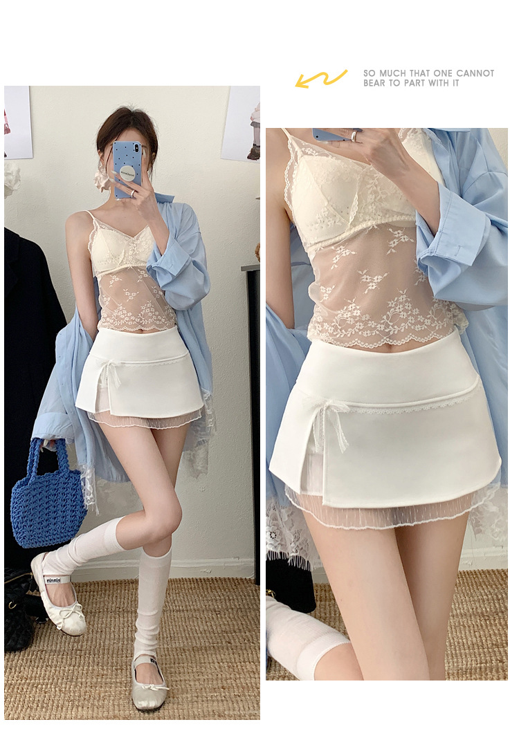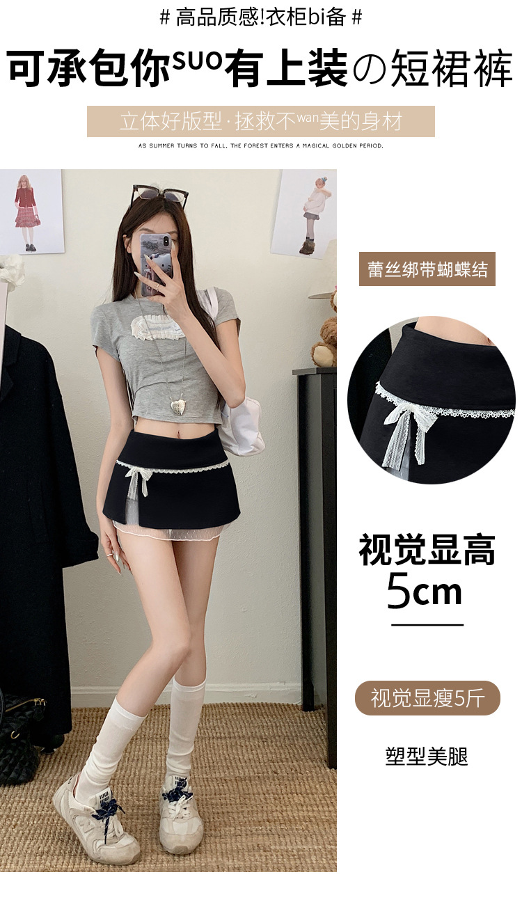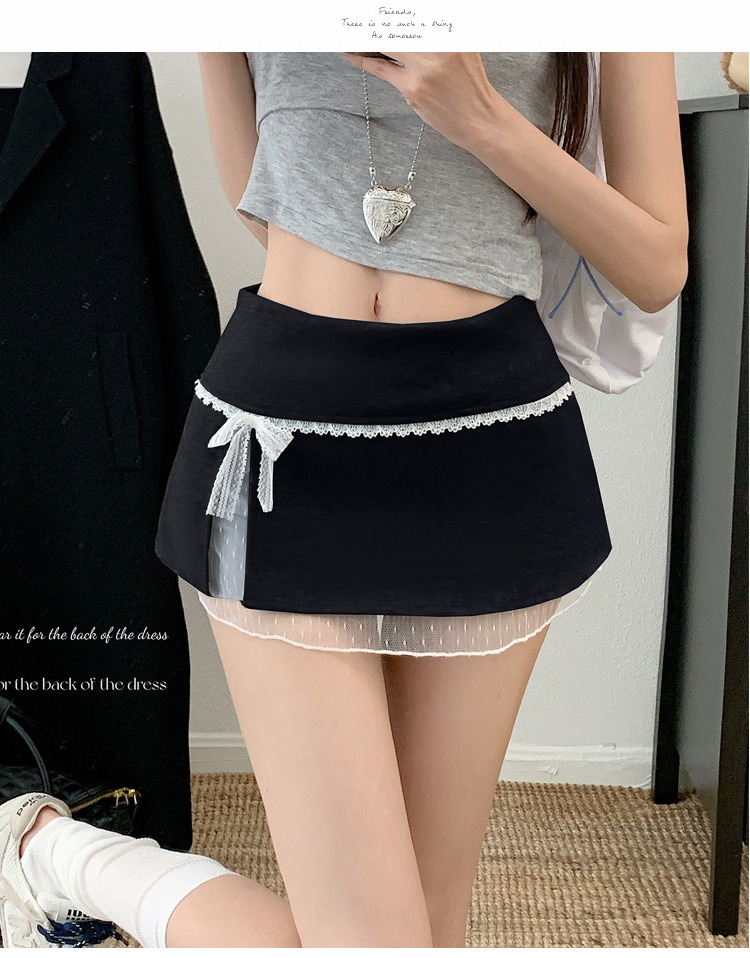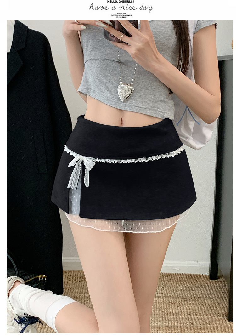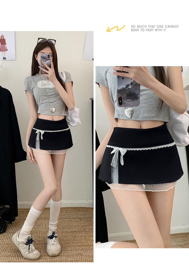 2025 여름 회색 한국 달콤한 스타일 보우 스커트 디자인 레이스 힙 스커트 여성용스토어 가기