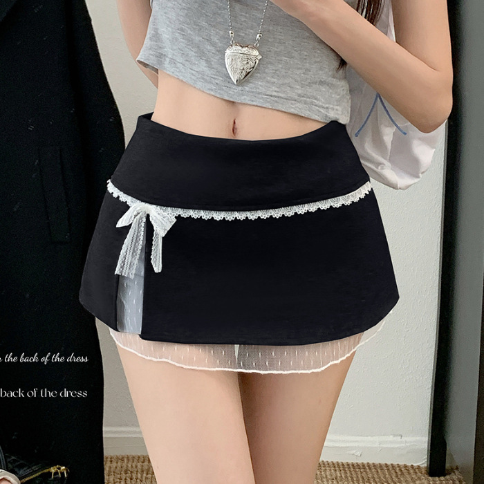 2025 여름 회색 한국 달콤한 스타일 보우 스커트 디자인 레이스 힙 스커트 여성용