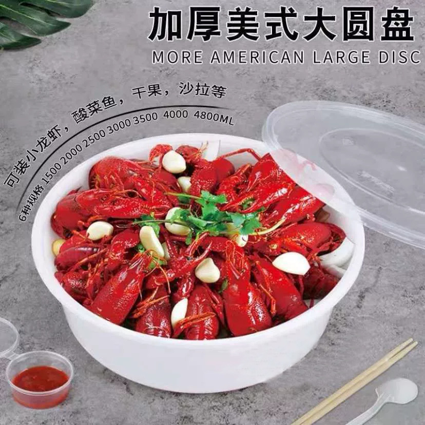 뚜껑이 있는 원형 일회용 도시락 상자, 테이크아웃 포장 상자, 두꺼운 투명 대형 그릇 포장 그릇스토어 가기