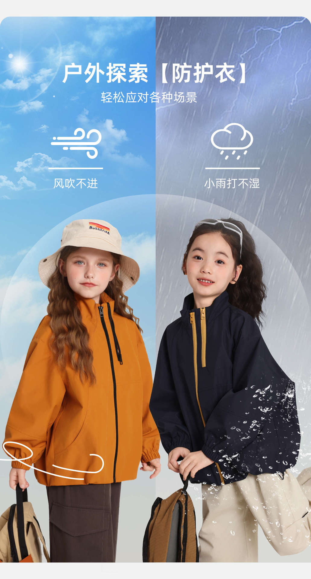 Pudding Haru 아동용 재킷 소녀 다목적 탑 2025 가을 신작 아동용 야외 스포츠 3방수 재킷