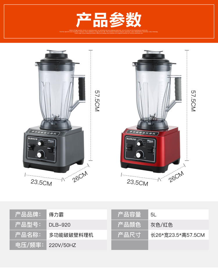 무료 배송 Deliba 920 브러시리스 모터 벽 파괴 조리 아침 식사 상점 상업용 고출력 용량 갓 갈은 두유 기계 1