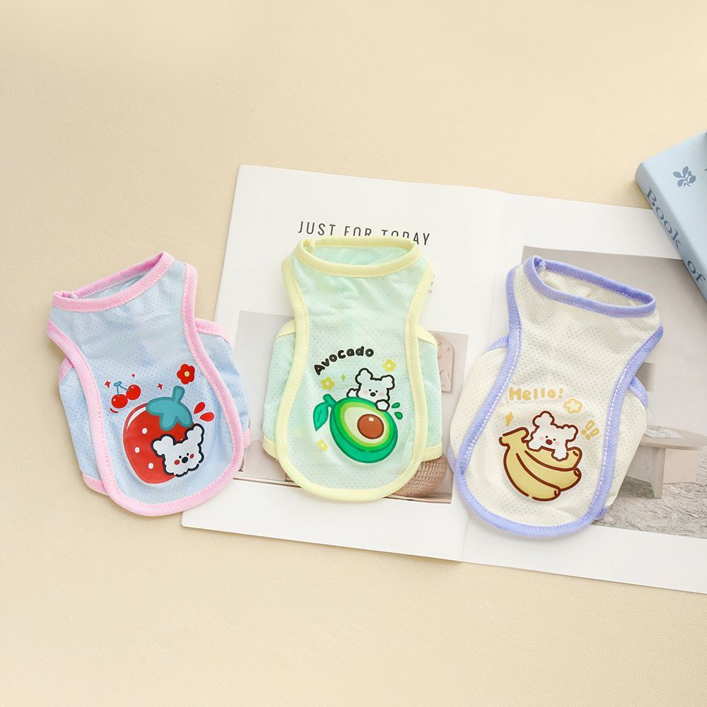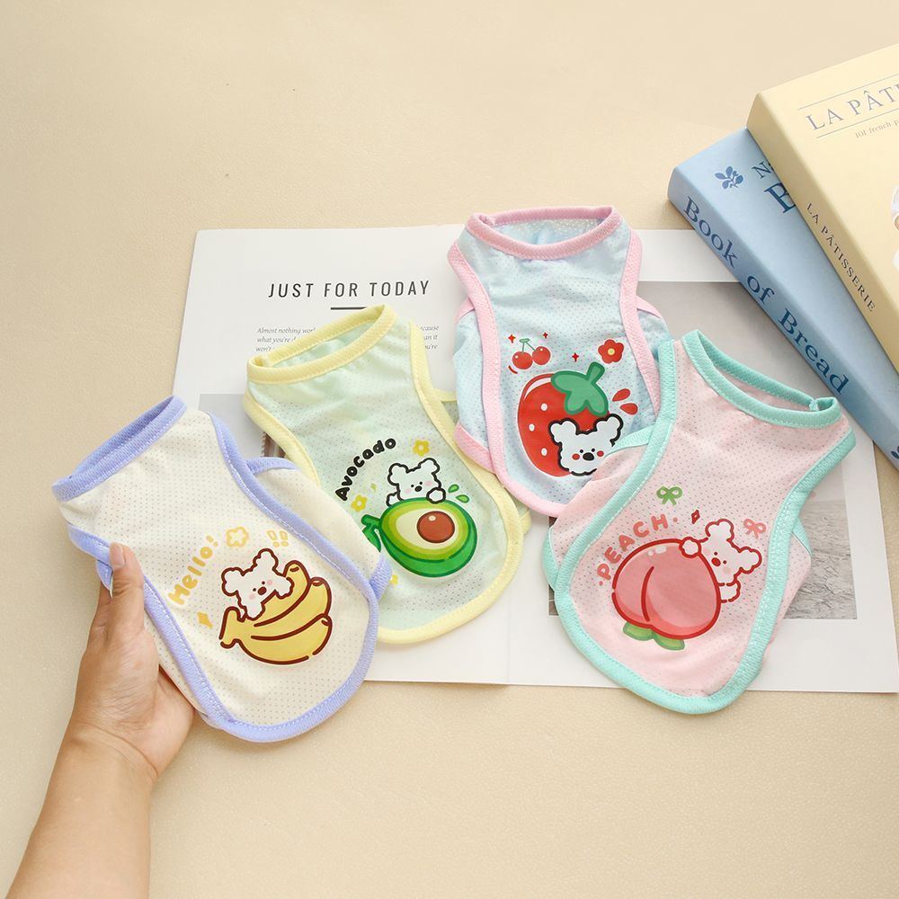 개 여름 냉각 나들이 조끼 애완 동물 얼음 실크 쿨 코트 만화 과일 동물 프린트 의류 XS-6XL