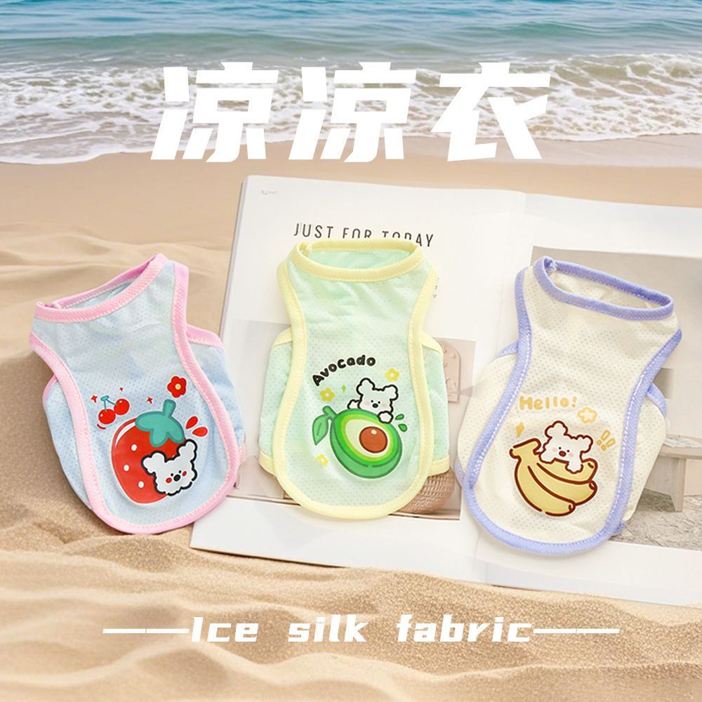 개 여름 냉각 나들이 조끼 애완 동물 얼음 실크 쿨 코트 만화 과일 동물 프린트 의류 XS-6XL스토어 가기