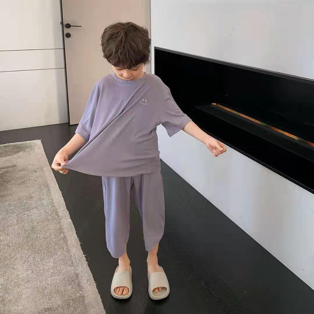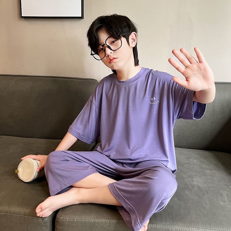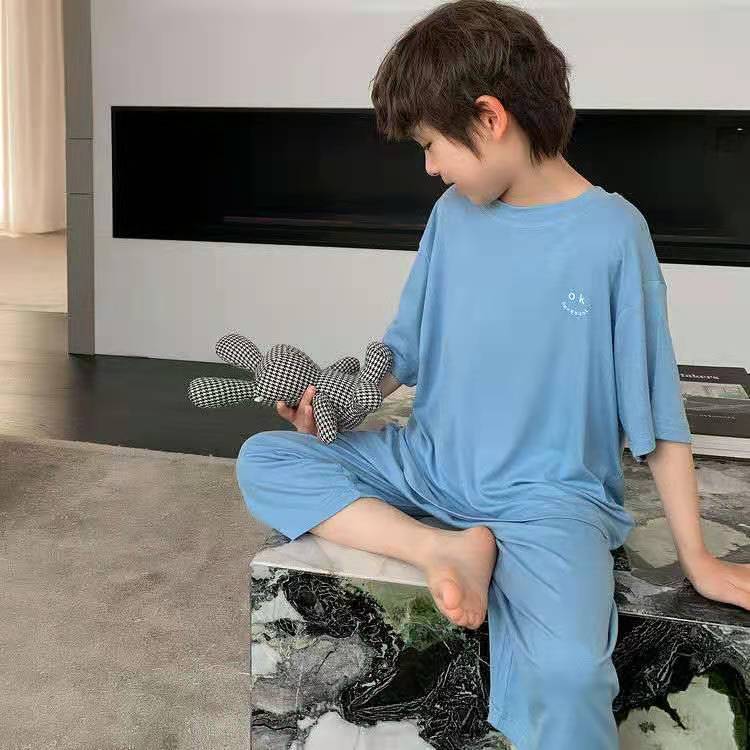 큰 어린이와 학생을 위한 여름 인터넷 연예인 소년 잠옷 모달 아이스 실크 에어컨 룸 얇은 가정복 세트
