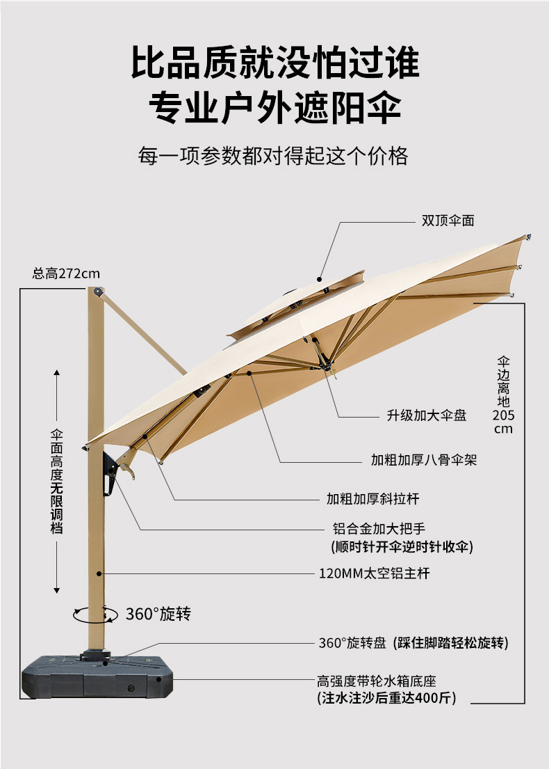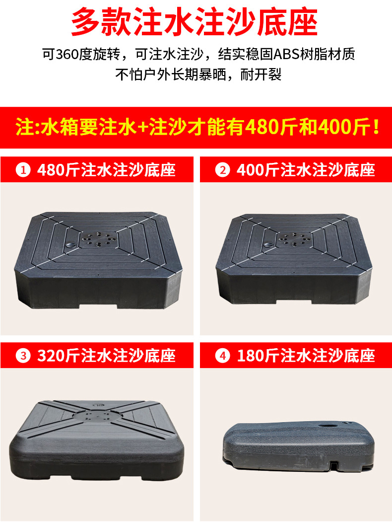 • [특별 업그레이드 8CM 우산봉] 정사각형 2.5m + 바퀴 달린 물탱크 160kg *수출 품질*
