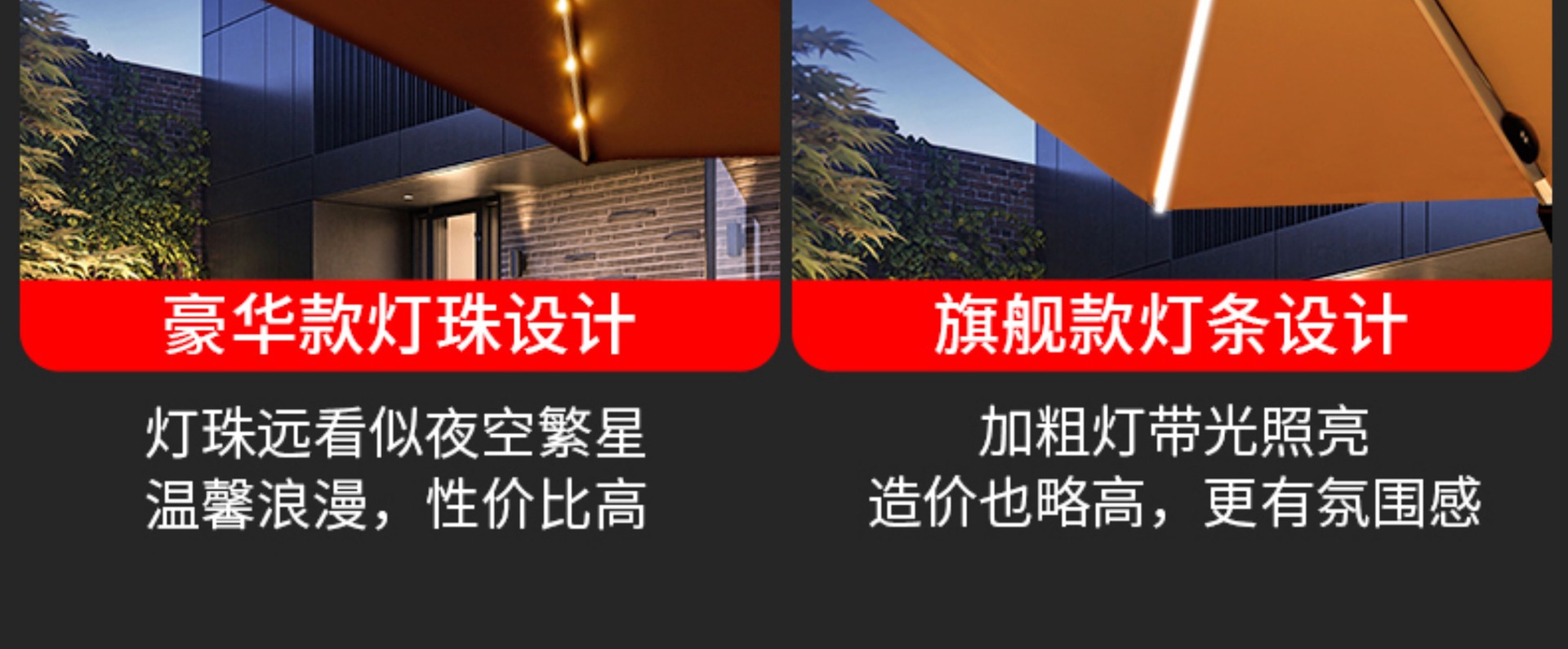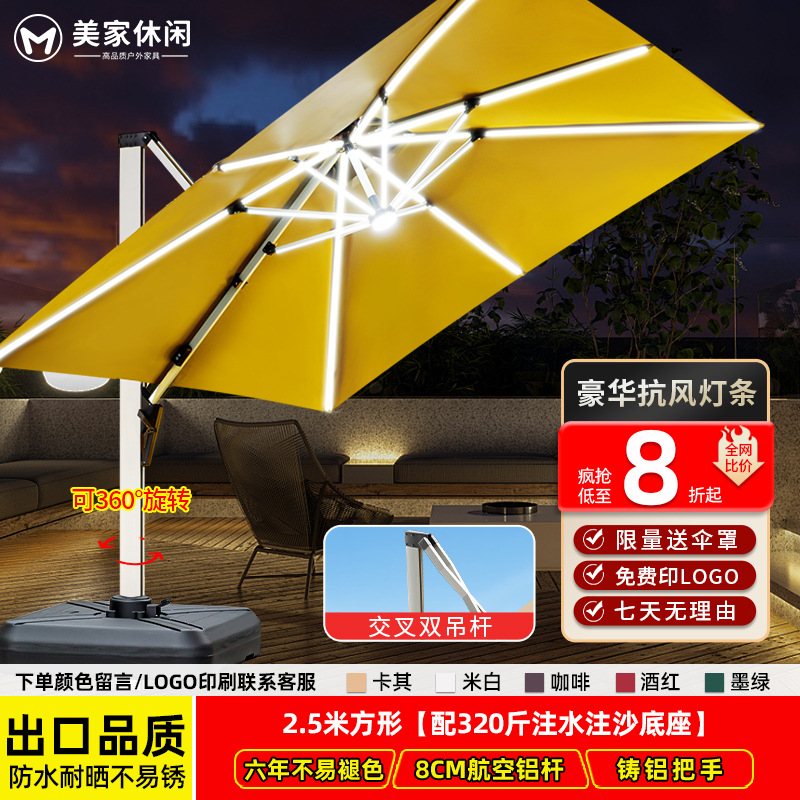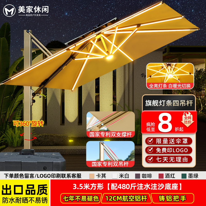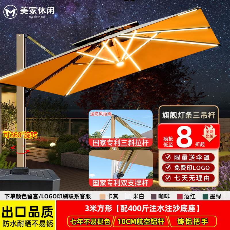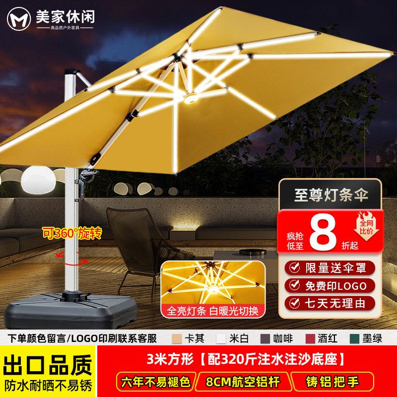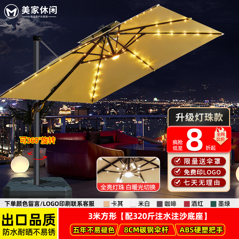 • [업그레이드된 램프 비드 스타일 8CM 우산 기둥] 정사각형 3m 개 + 바퀴 달린 물 탱크 160kg 개 * 흰색 따뜻한 조명 조정 *
