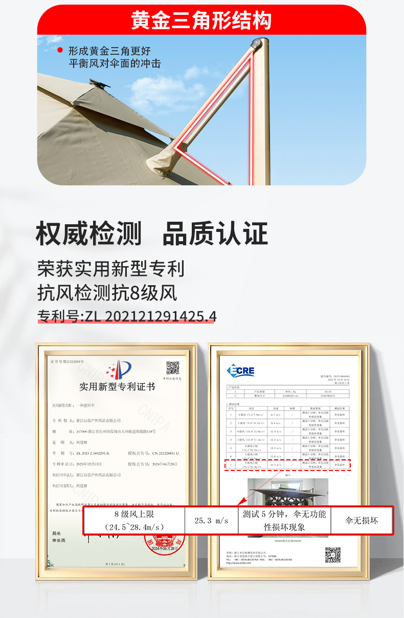 • [방풍 강화 8CM 알루미늄 폴] 2.5m 평방 + 200kg 초안정 수조 *레벨 7 바람 저항*