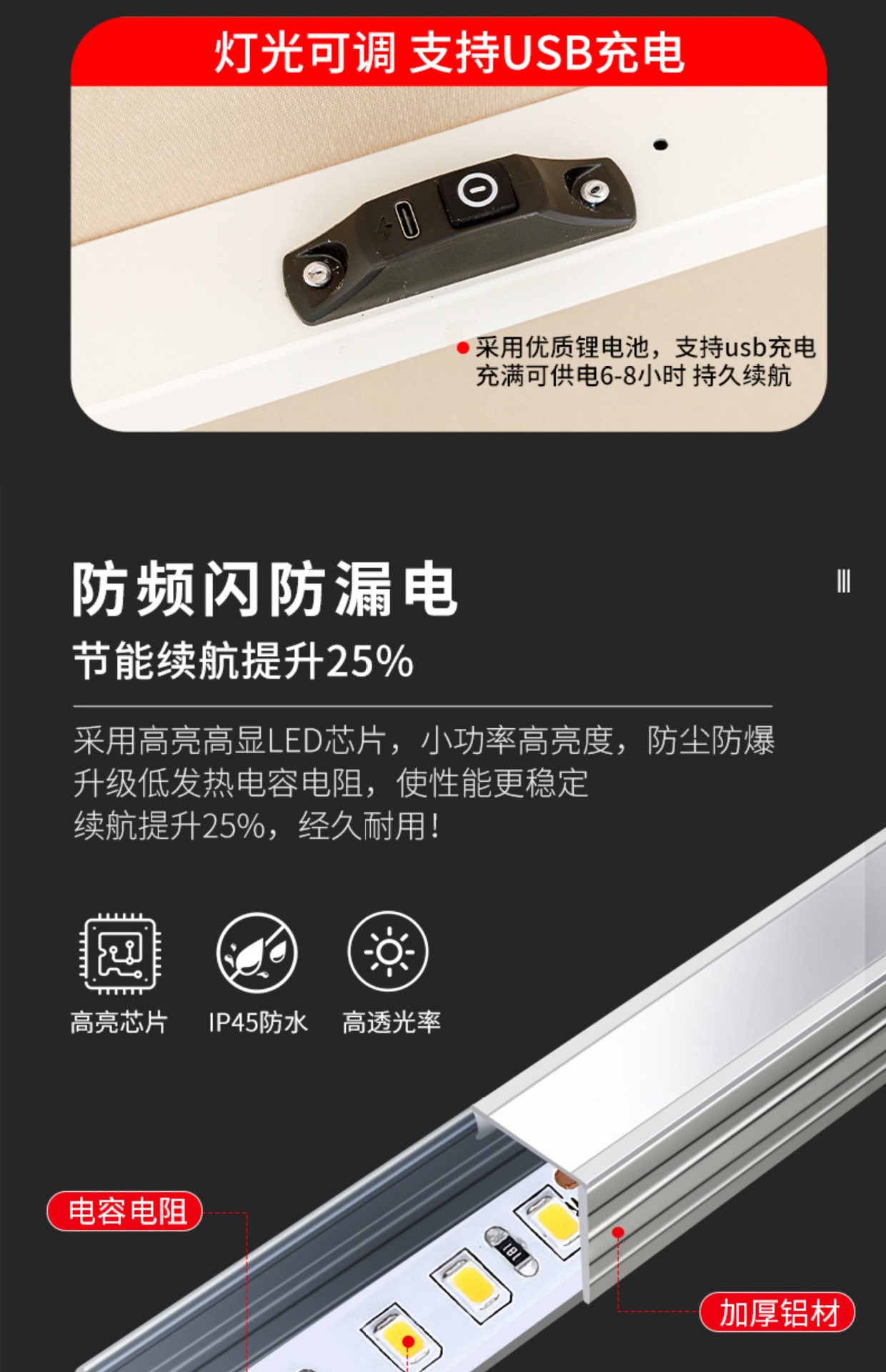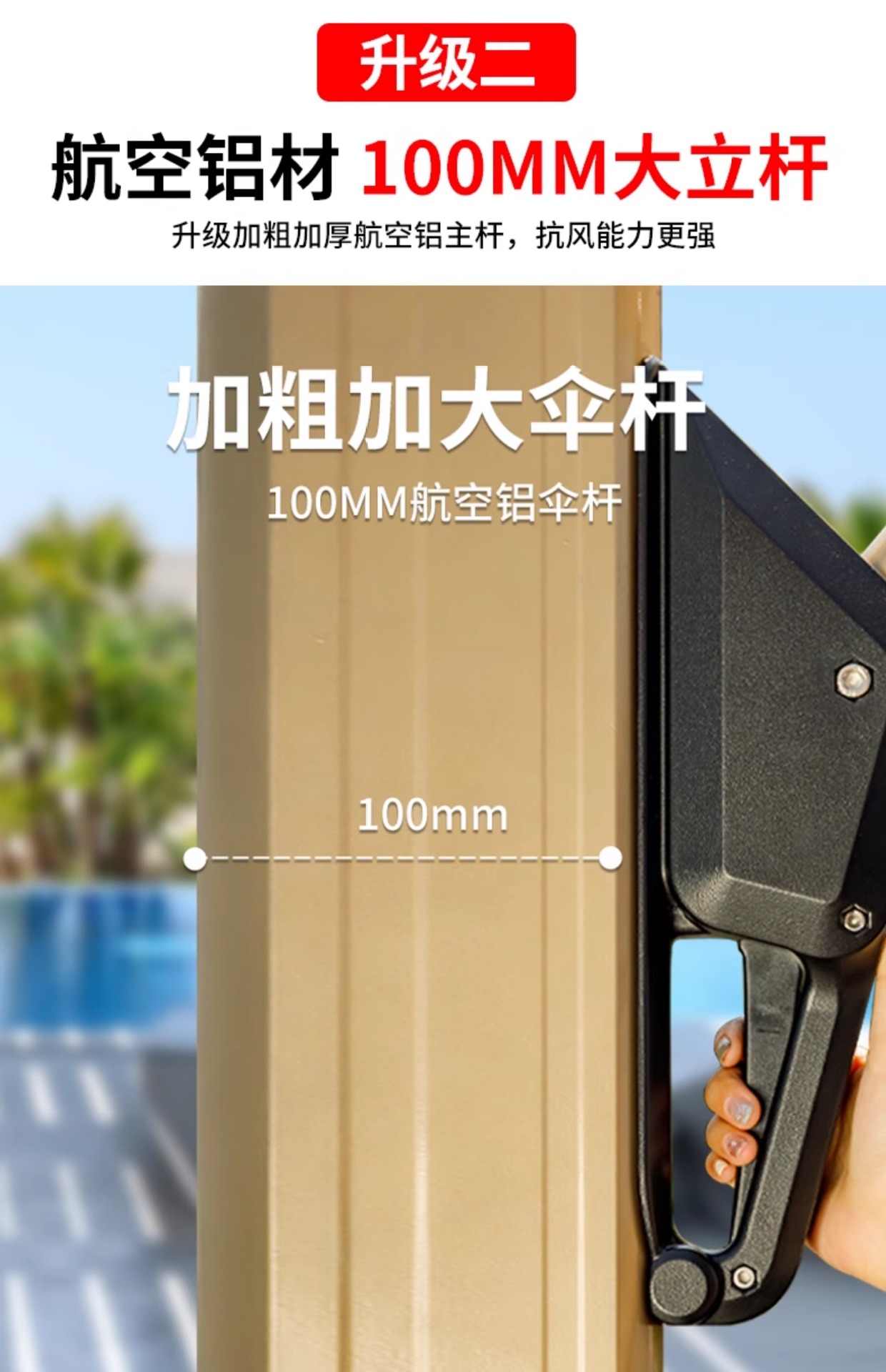 • [럭셔리 방풍 라이트 바 8CM 알루미늄 폴] 3m 평방 + 200kg 초안정 물탱크 *레벨 7 바람 저항*