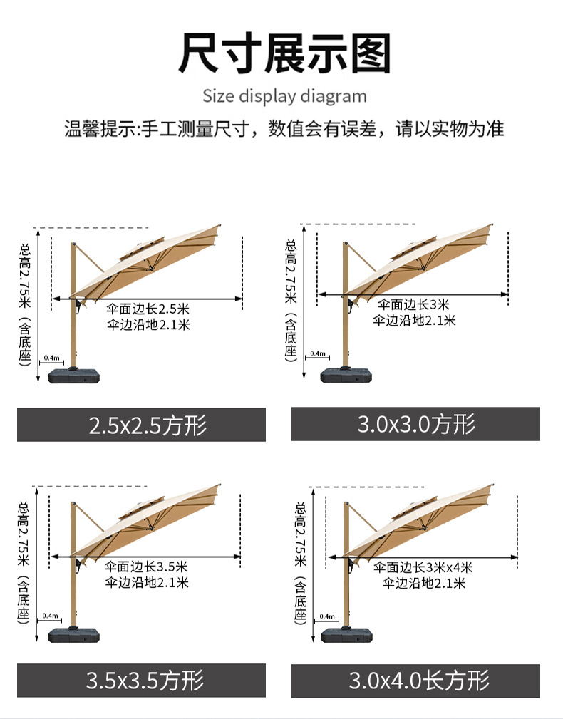 • [업그레이드된 램프 비드 8CM 우산봉] 정사각형 2.5m개 + 바퀴 달린 물탱크 160kg개 *백색 따뜻한 조명 조정*