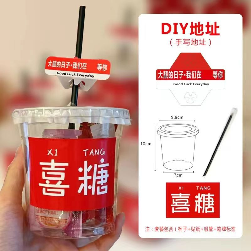 • 컵 + 평면뚜껑 + 누수방지지 + 빨대 + 웨딩캔디 스티커
