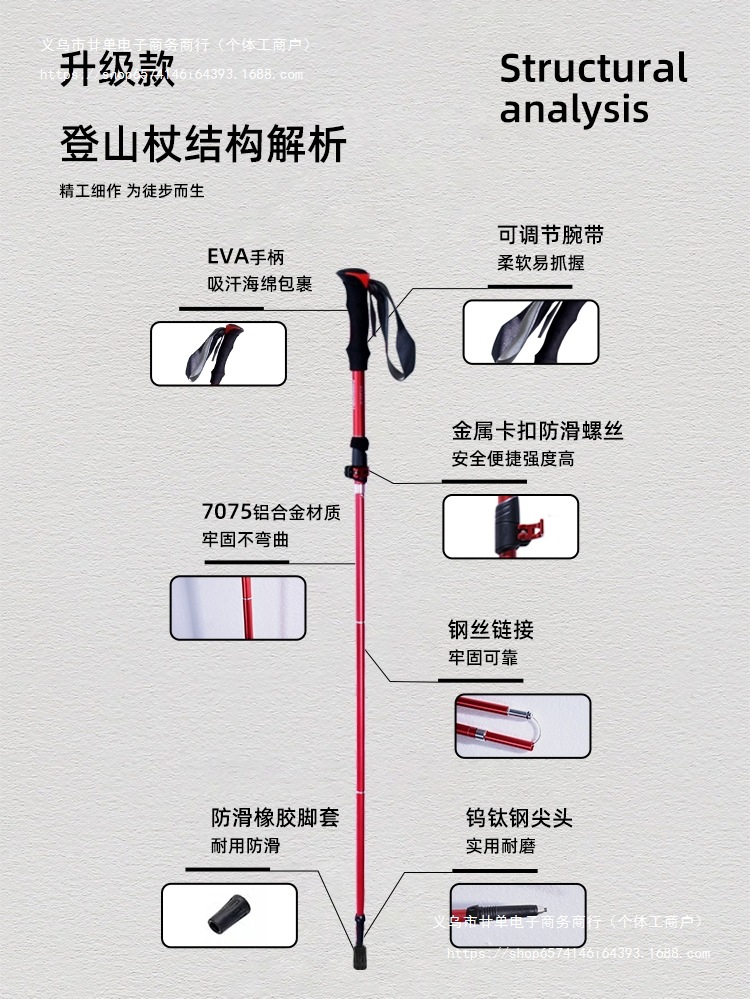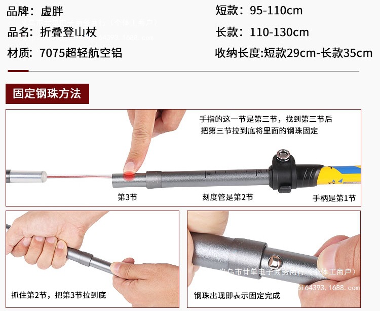 경량 개폐식 접이식 하이킹 스틱 야외 하이킹 휴대용 어린이 및 여성 미니 탄소 지팡이 등산 장비