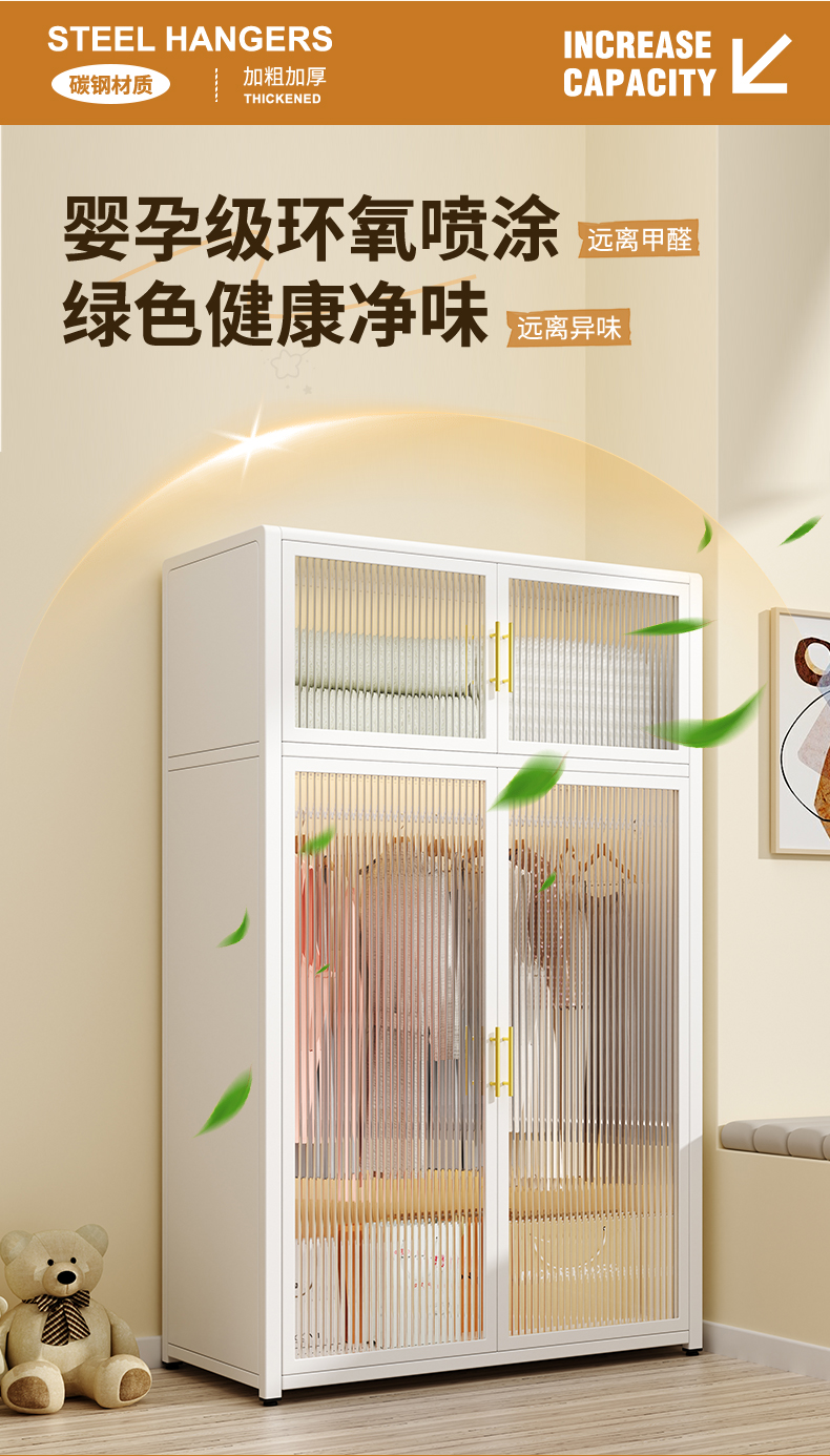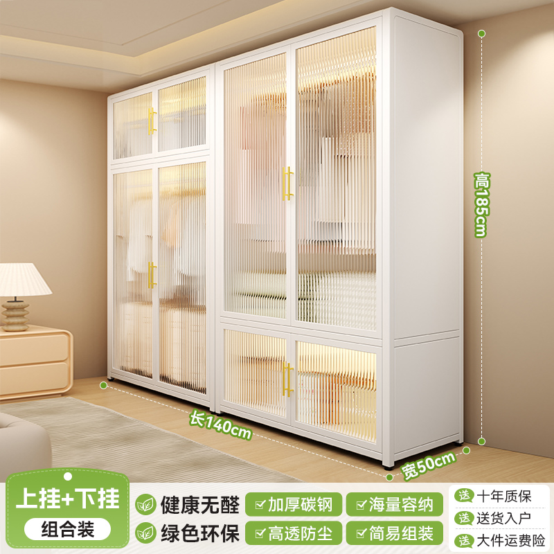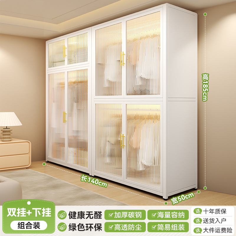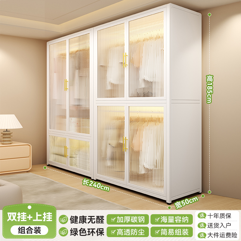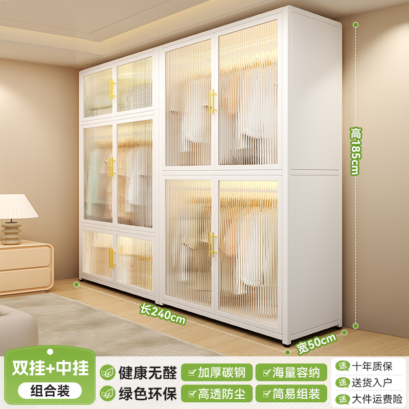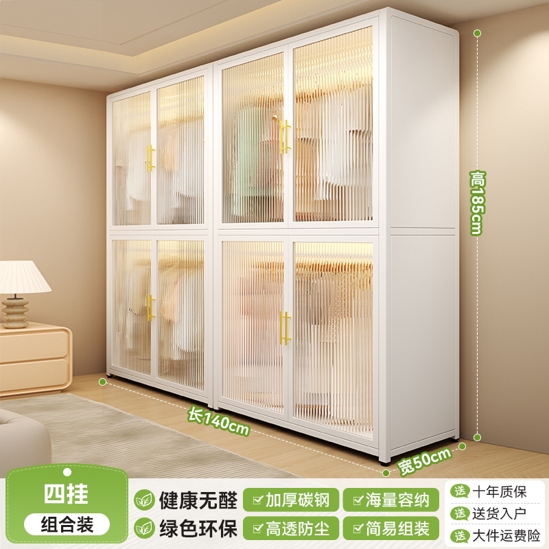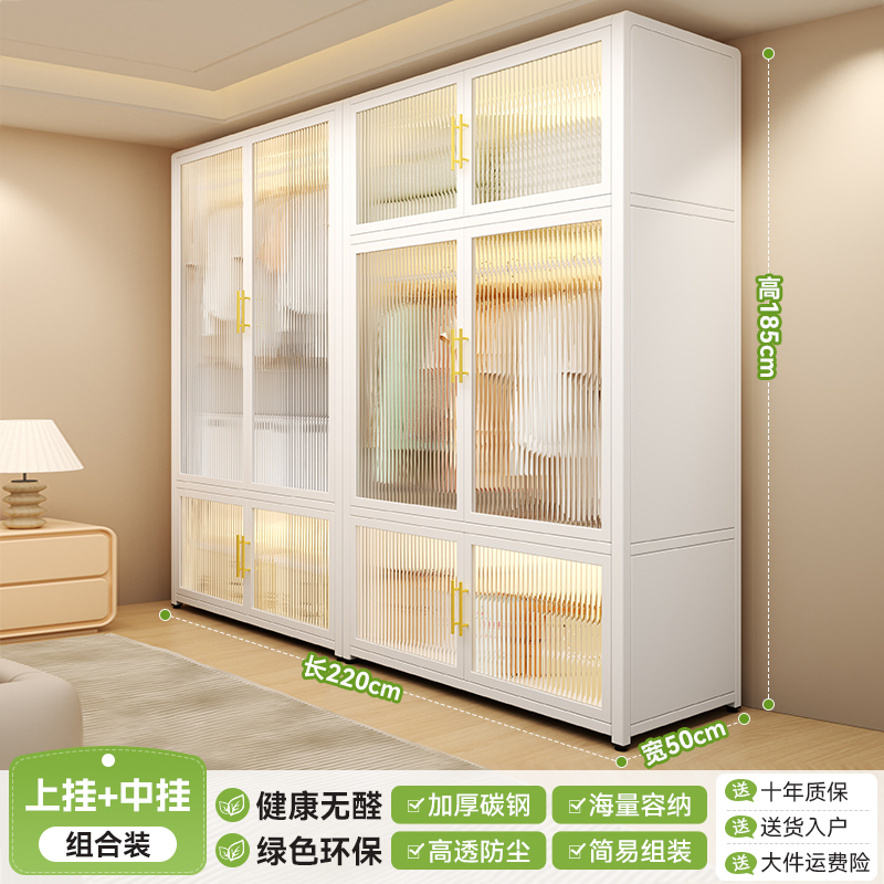 침실 홈 임대용 간단한 옷장 조립 금속 전체 강철 프레임 새로운 옷장 작은 아파트 보관 캐비닛