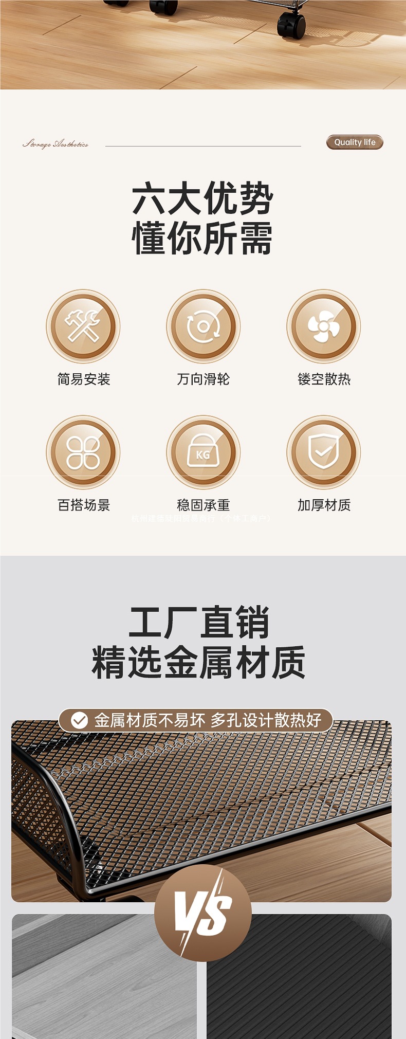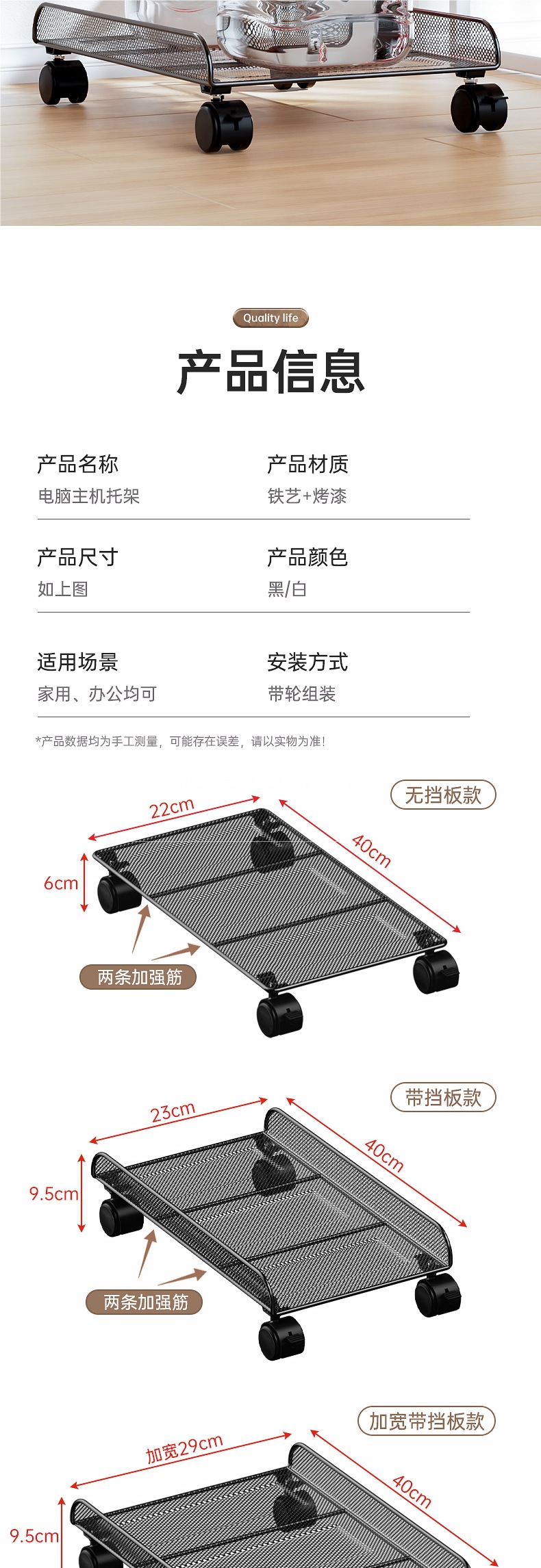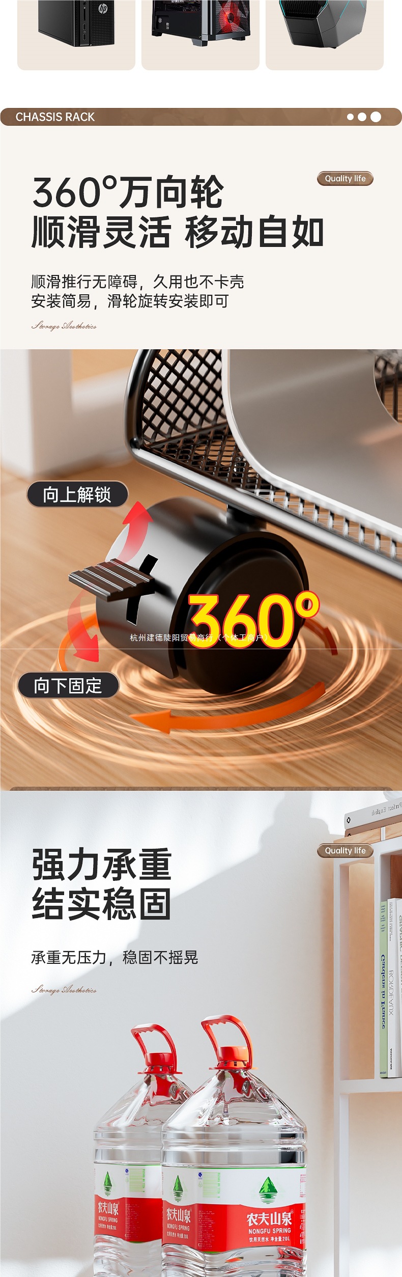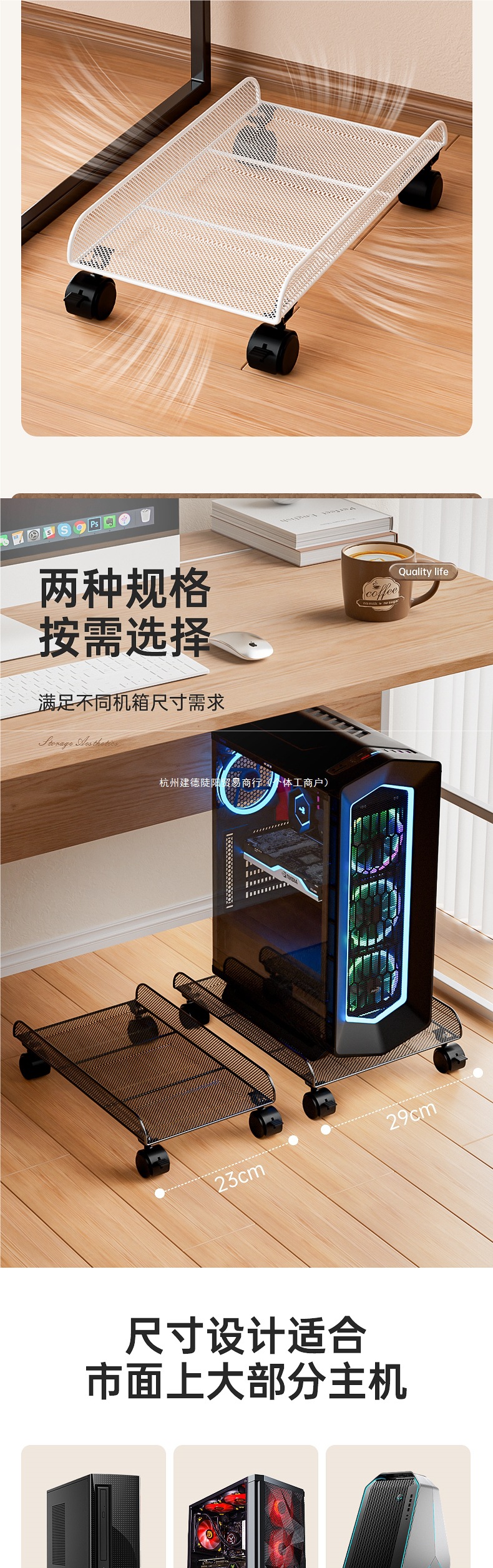컴퓨터 호스트 브래킷 데스크탑 섀시 베이스 높이 슬라이딩 휠이 있는 가정용 바다 전망 룸 보관함 트레이 브래킷