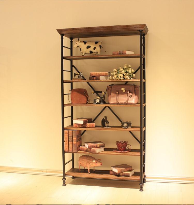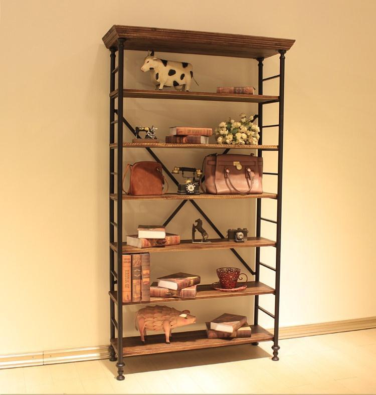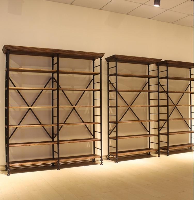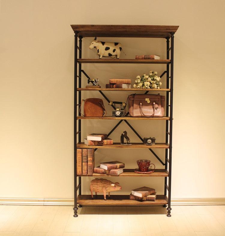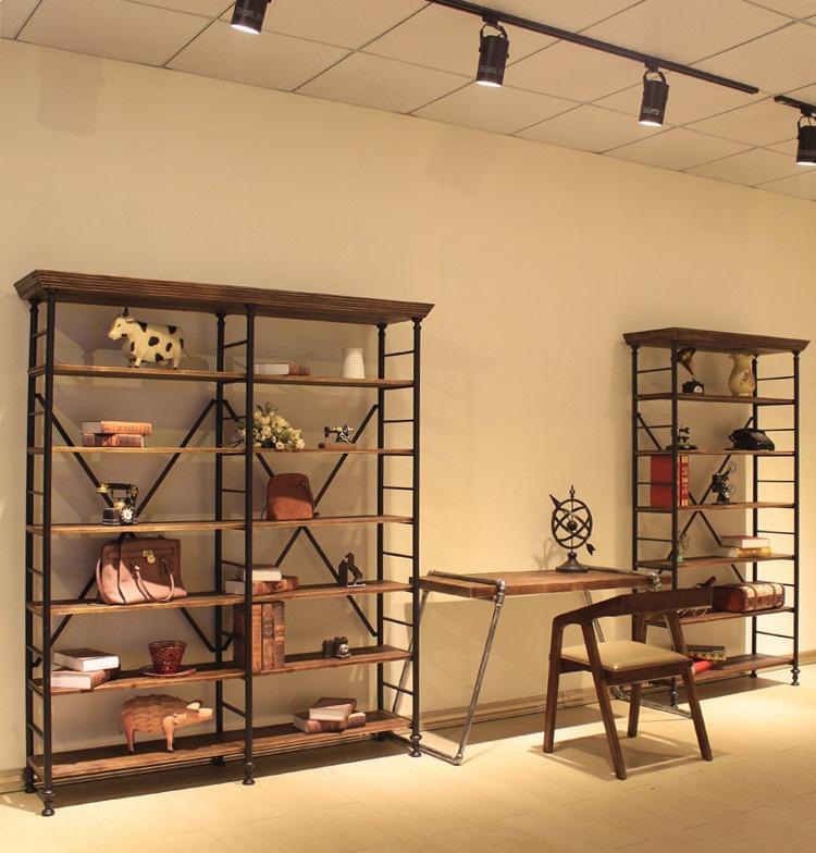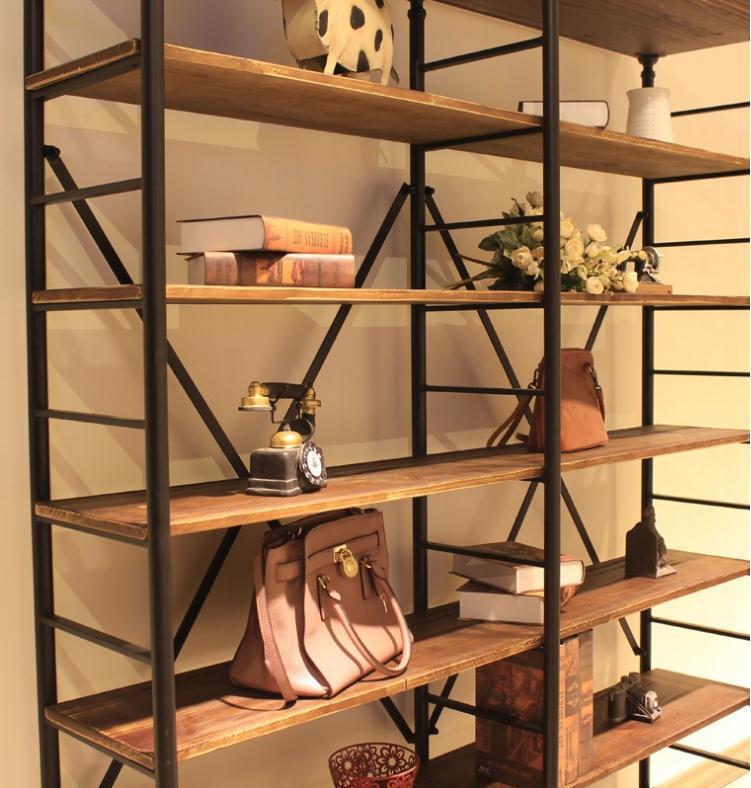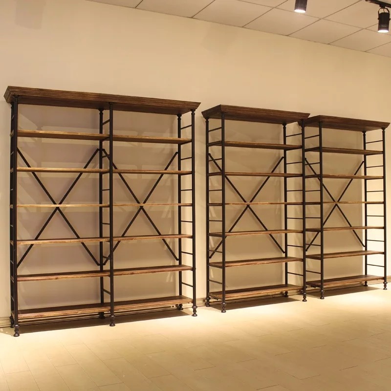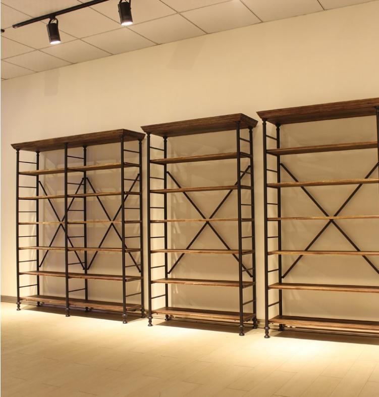 미국 복고풍 철 책장 책장 바닥 거실 단단한 나무 선반 스토리지 랙 디스플레이 캐비닛 디스플레이 랙 산업 스타일스토어 가기