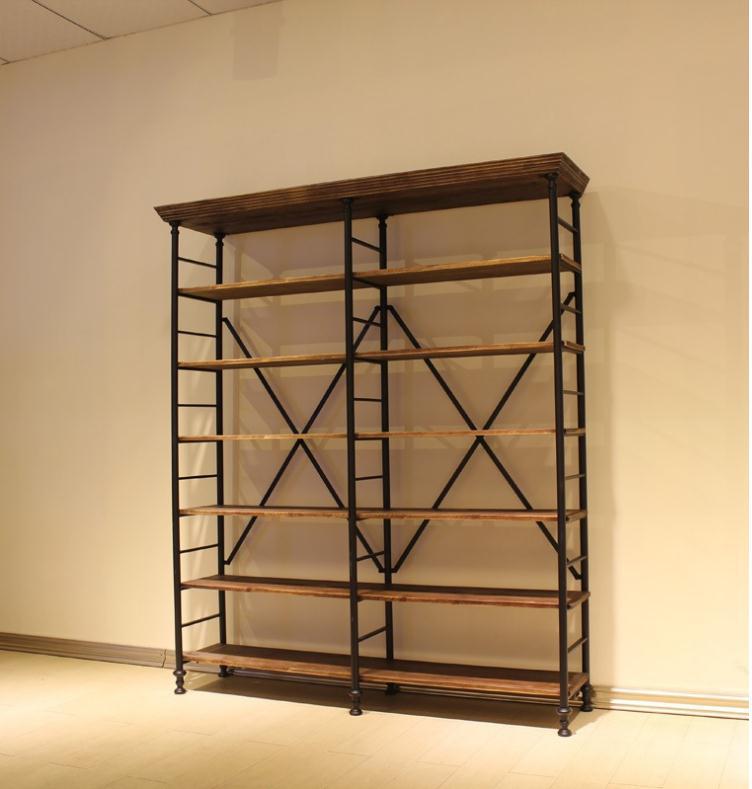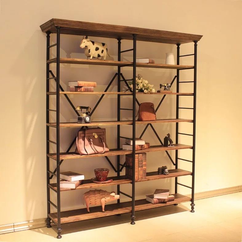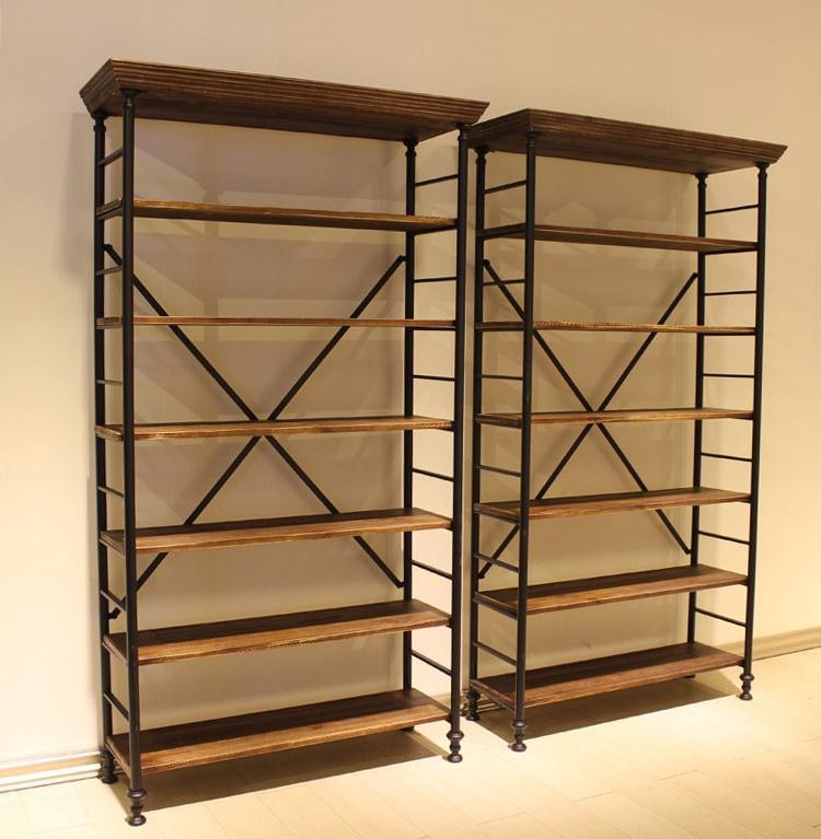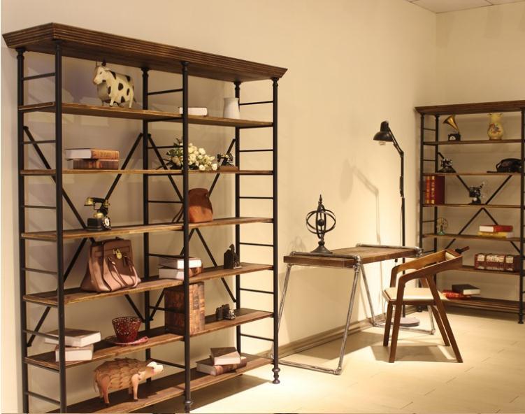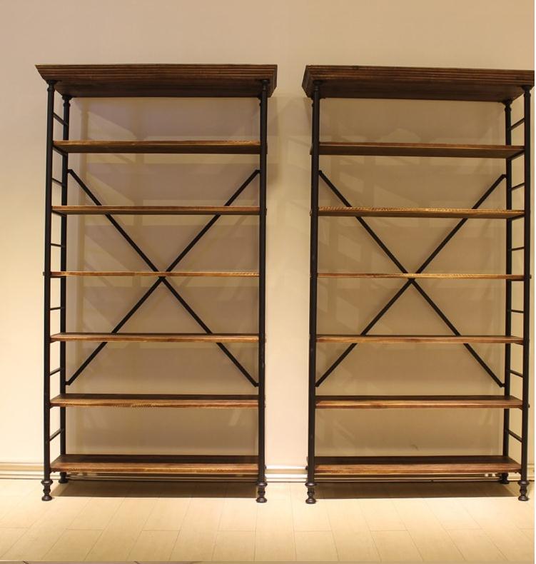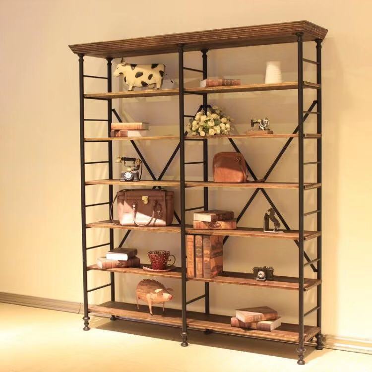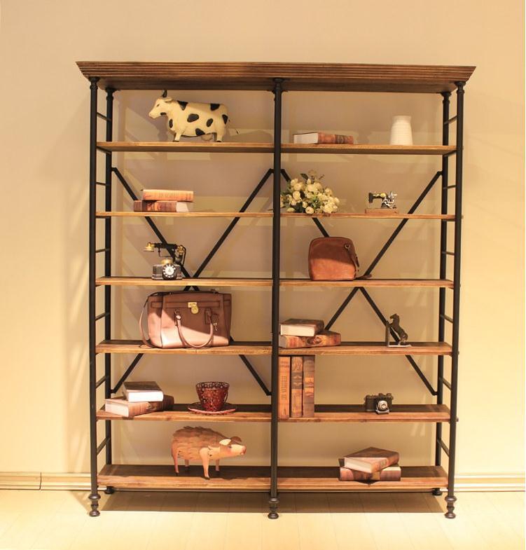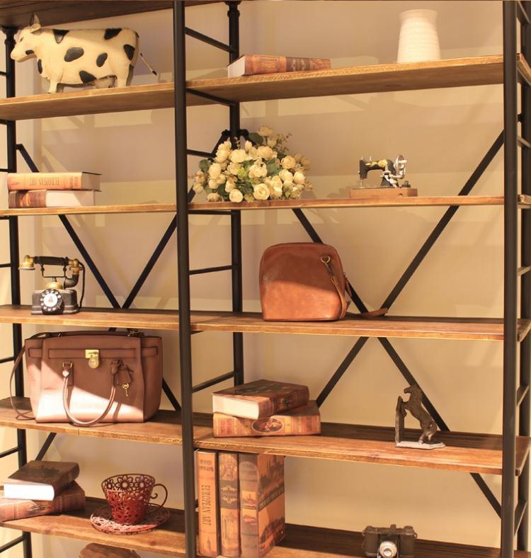 미국 복고풍 철 책장 책장 바닥 거실 단단한 나무 선반 스토리지 랙 디스플레이 캐비닛 디스플레이 랙 산업 스타일스토어 가기