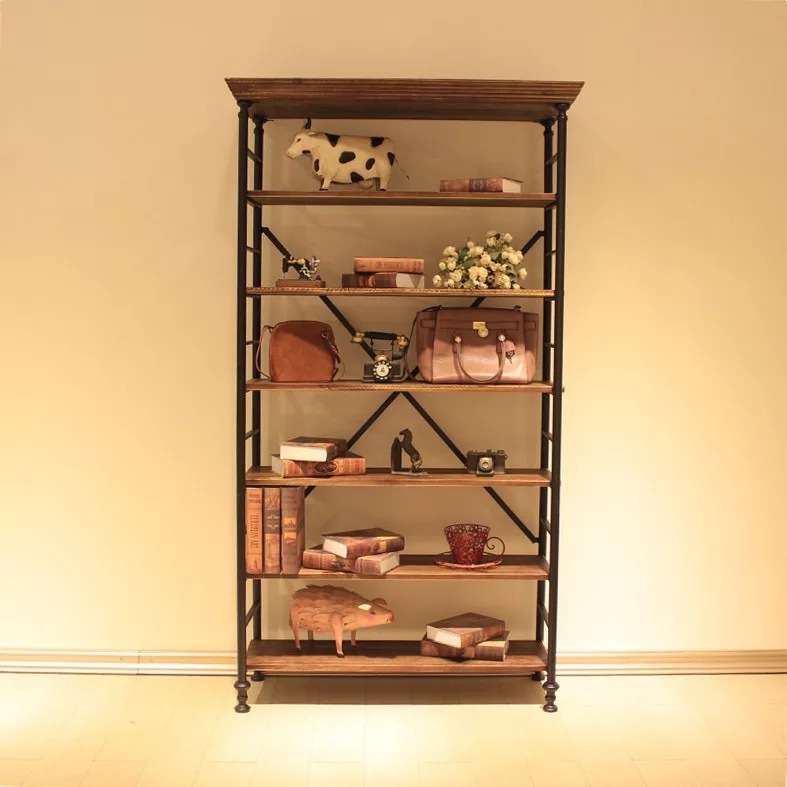 미국 복고풍 철 책장 책장 바닥 거실 단단한 나무 선반 스토리지 랙 디스플레이 캐비닛 디스플레이 랙 산업 스타일