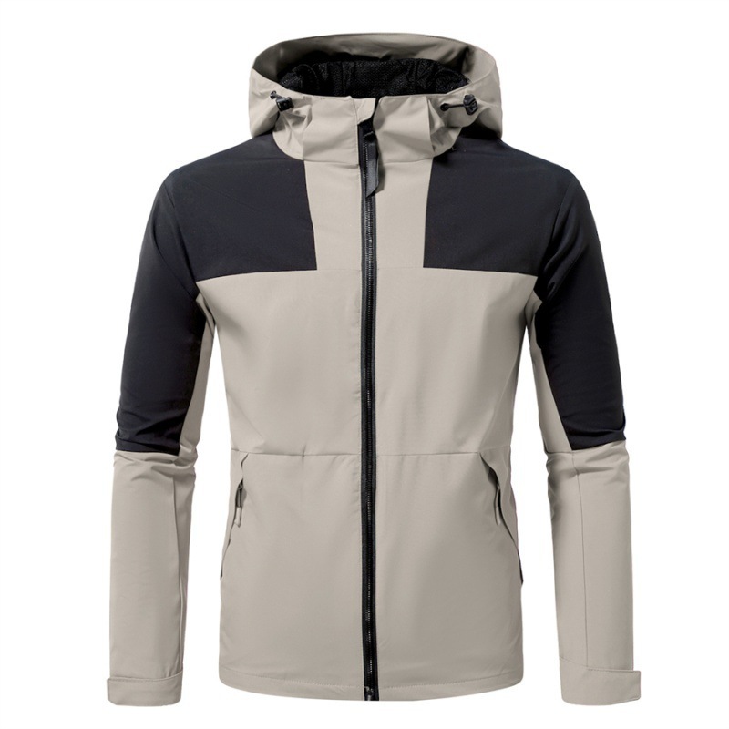 2025 신형 남성용 고탄성 코듀로이 후드 보호 재킷 컬러 블록 발수 여행 하이킹 후드 재킷