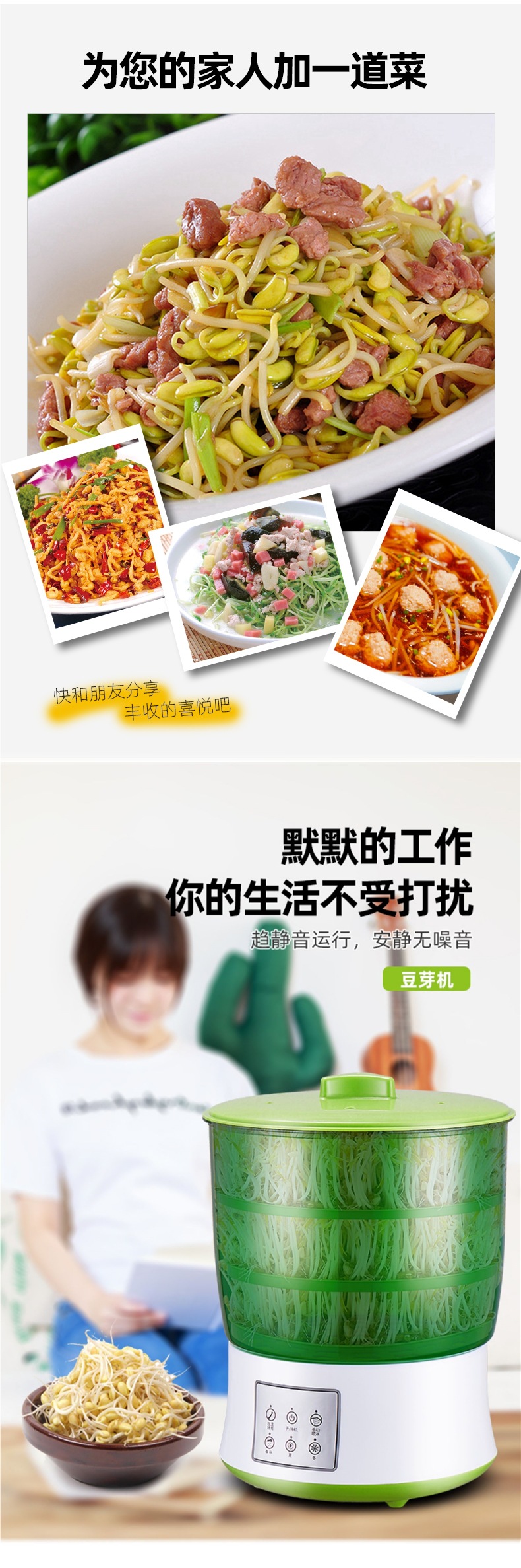 완전 자동 가정용 콩나물 기계, 소형 녹두 콩나물, 땅콩나물 발아 냄비, 발아 야채 도구, 생 콩나물 도구스토어 가기