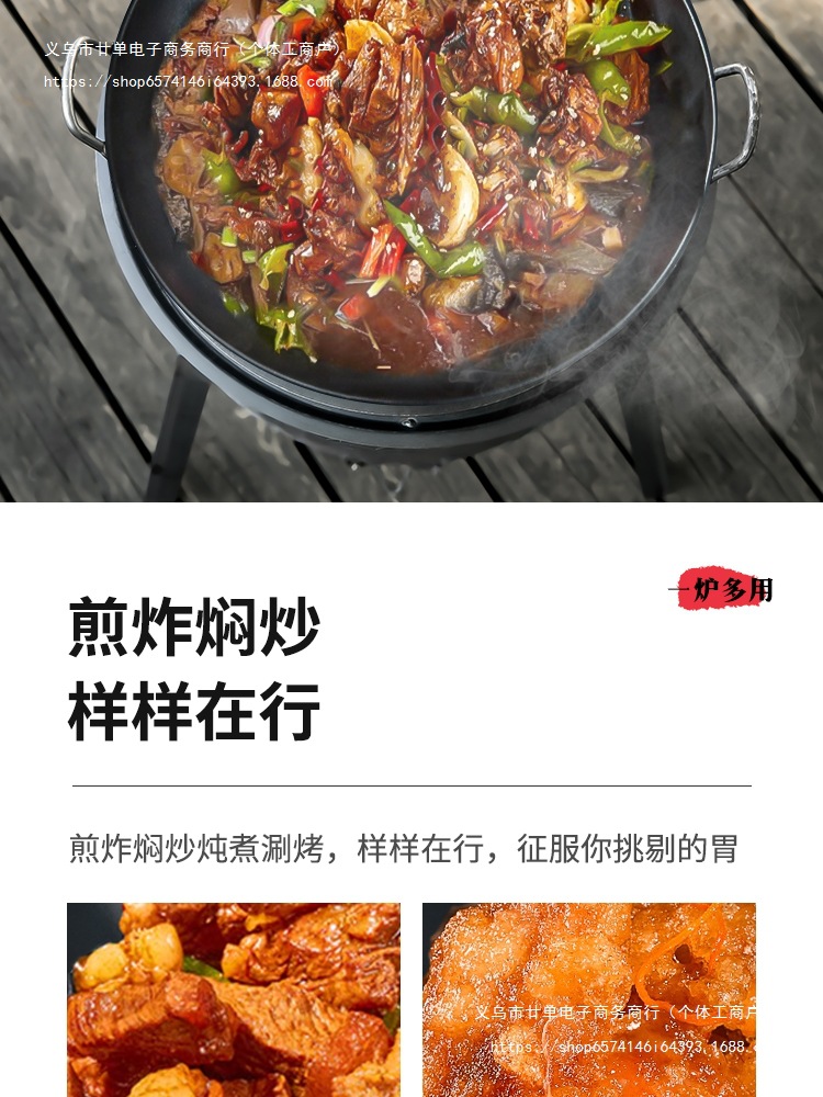 • [클래식 대형 화로] [두꺼운 2.2 패턴 강철] 48CM + [냄비 포함 풀 세트]