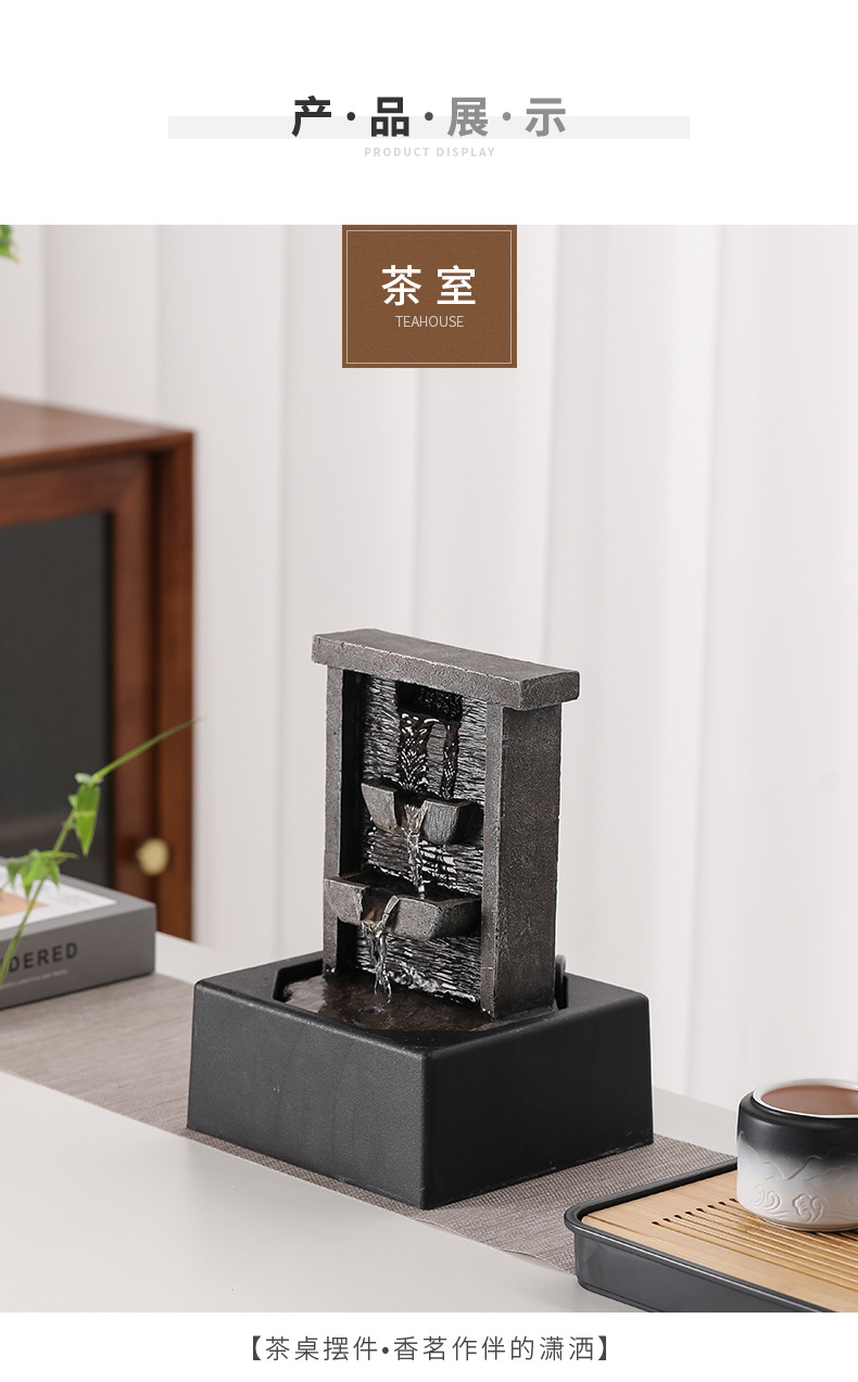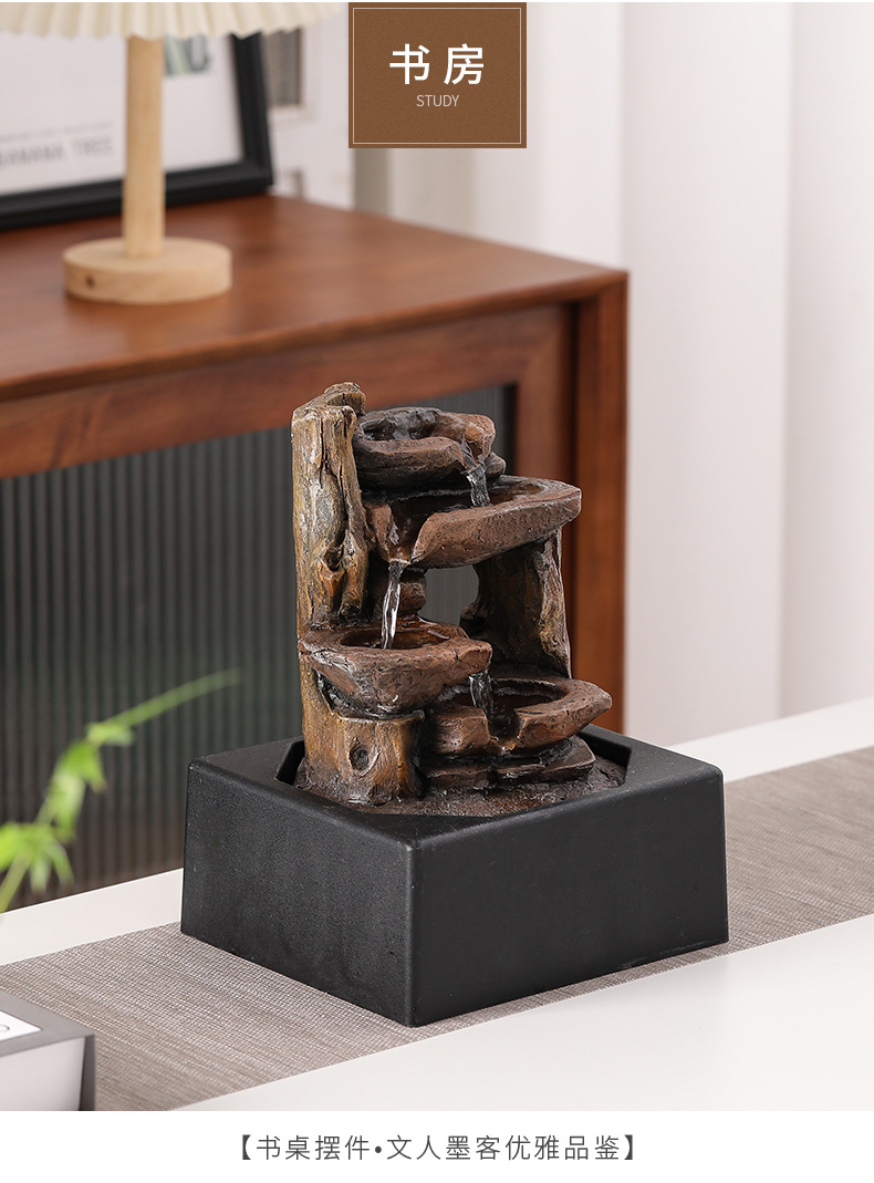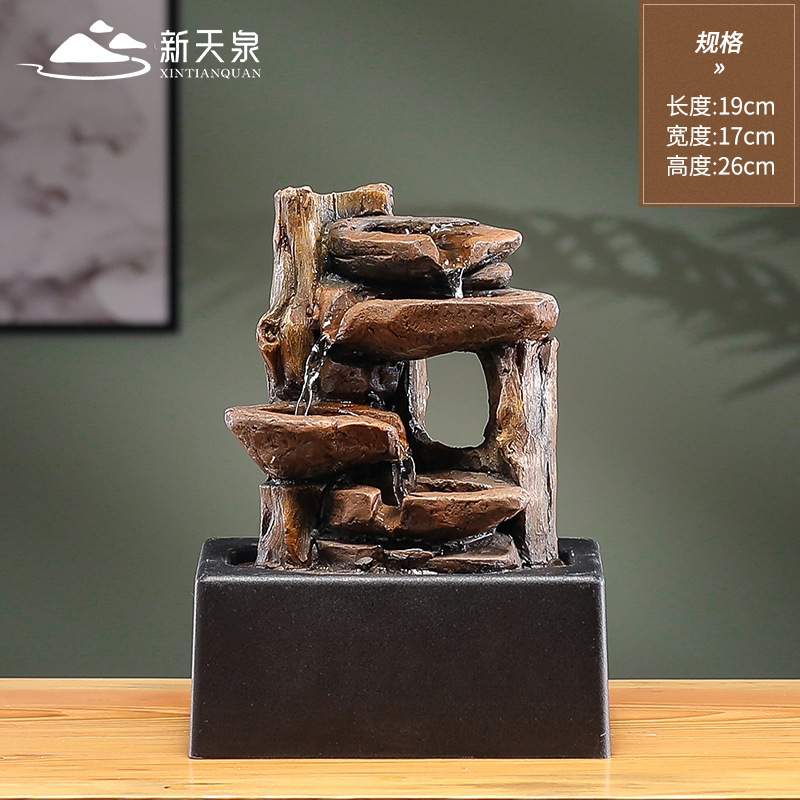 Xintianquan 중국 스타일 행운의 흐르는 물 장식품 순환 물 사무실 커피 테이블 데스크탑 장식 작은 분수 장식품